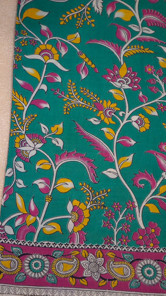 Chanderi Saree Ikkatkari Print - Teal Blue & Green