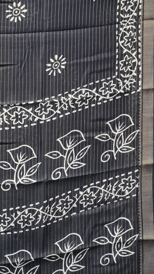 Dola Silk Saree Floral Print - Black