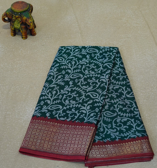 Chanderi Saree Peacock Print - Green