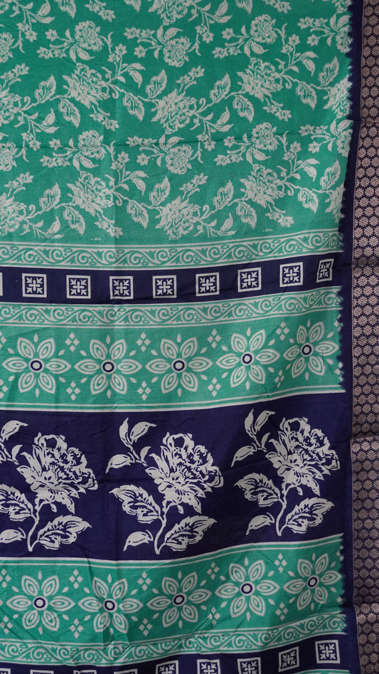 Dola Silk Saree Floral print-Teal green