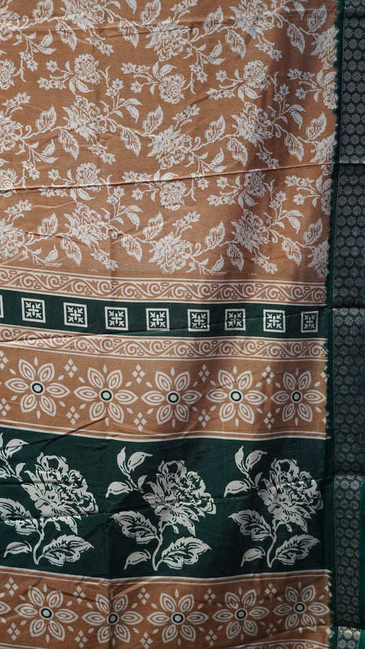 Dola Silk Saree Floral print-Brown