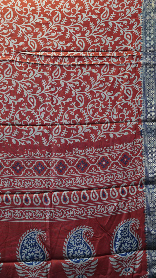Chanderi Saree Peacock Print - Red