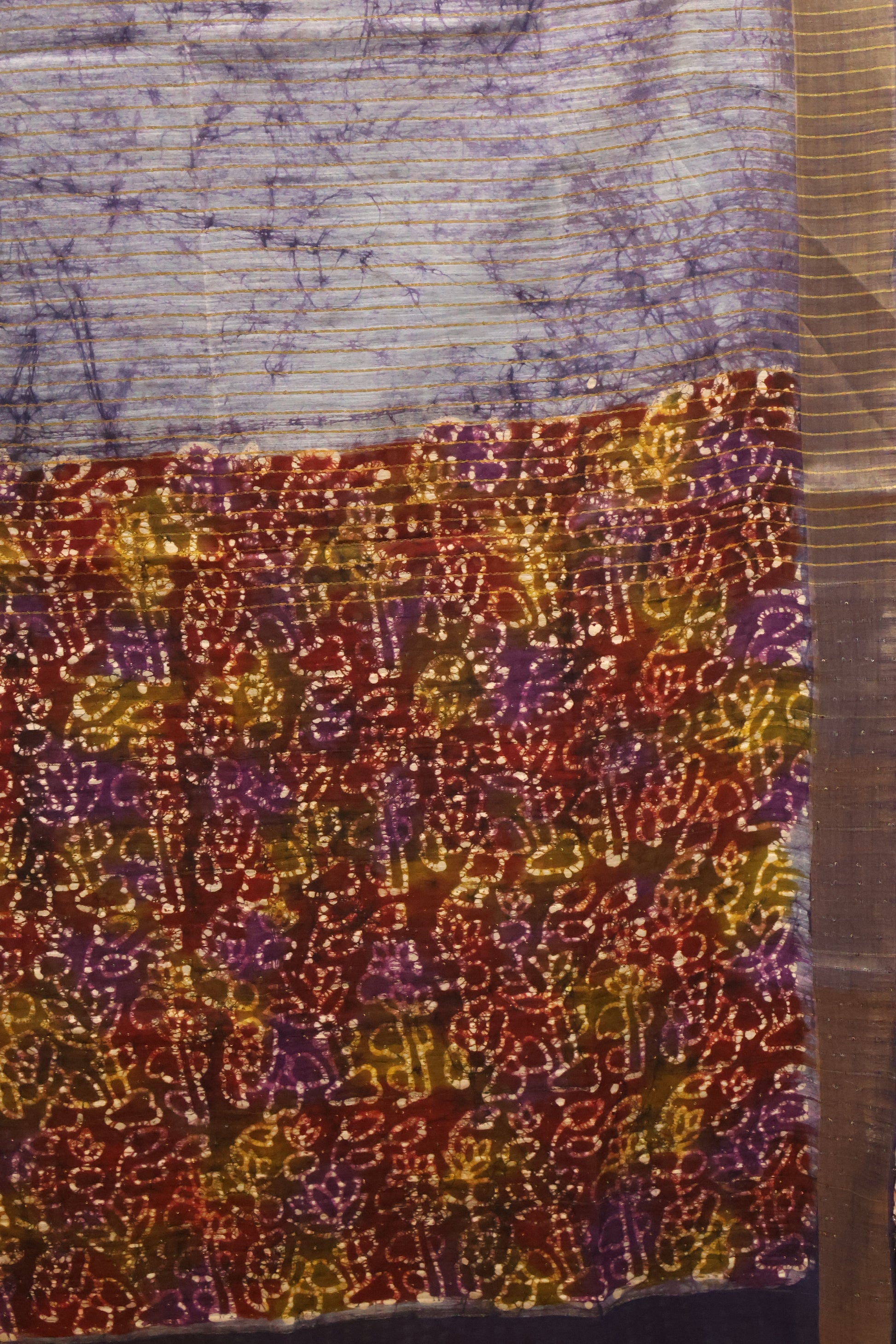 Art Bhagalpur Tussar Saree-Navy Blue Silver