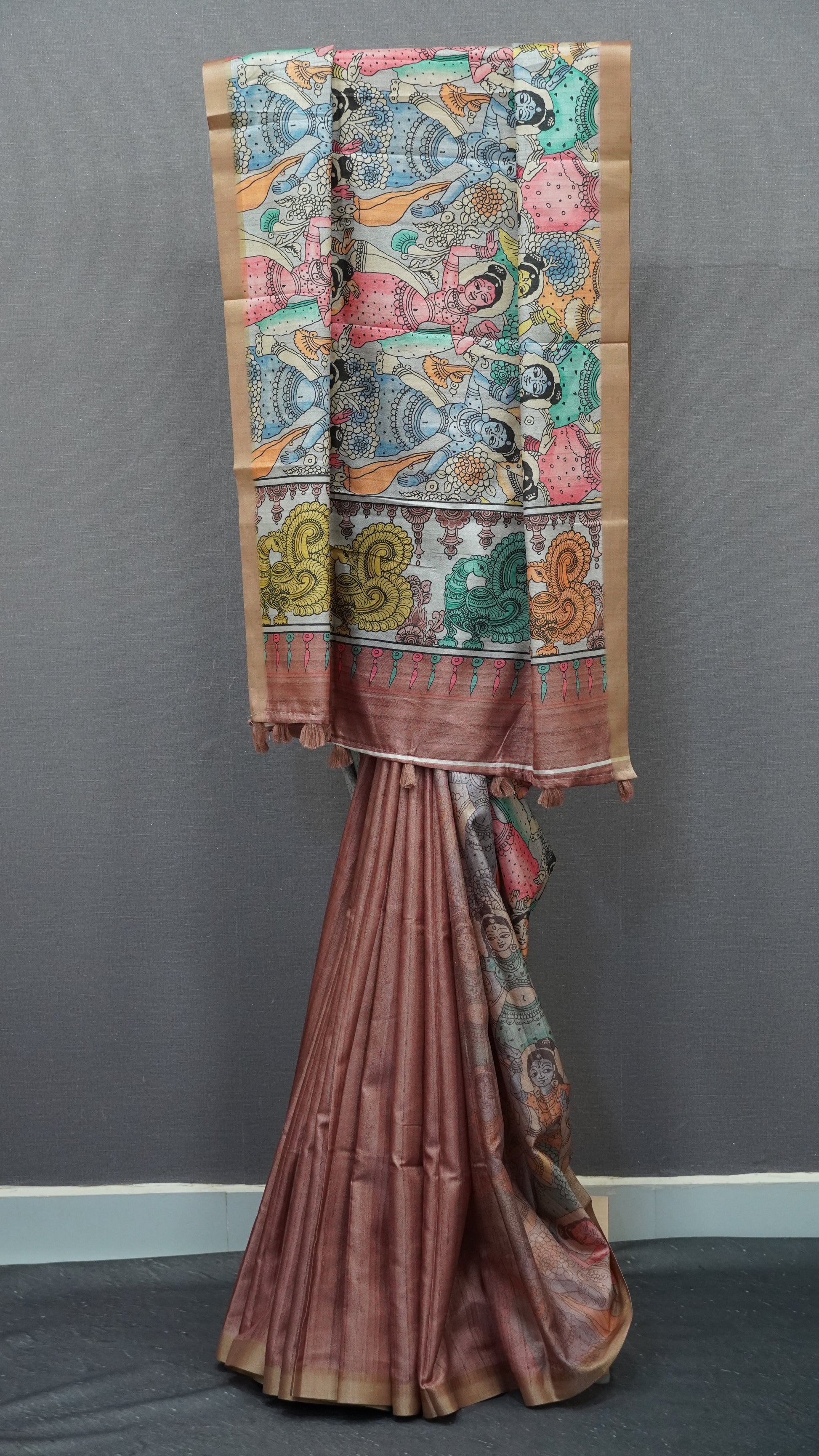 Art Mulberry Silk Saree-Choco Brown Penn Kalamkari