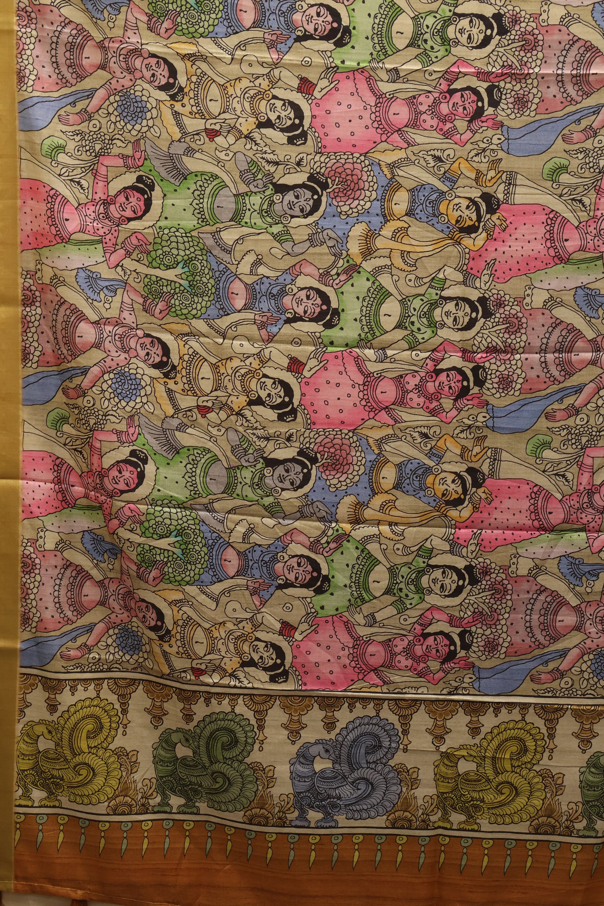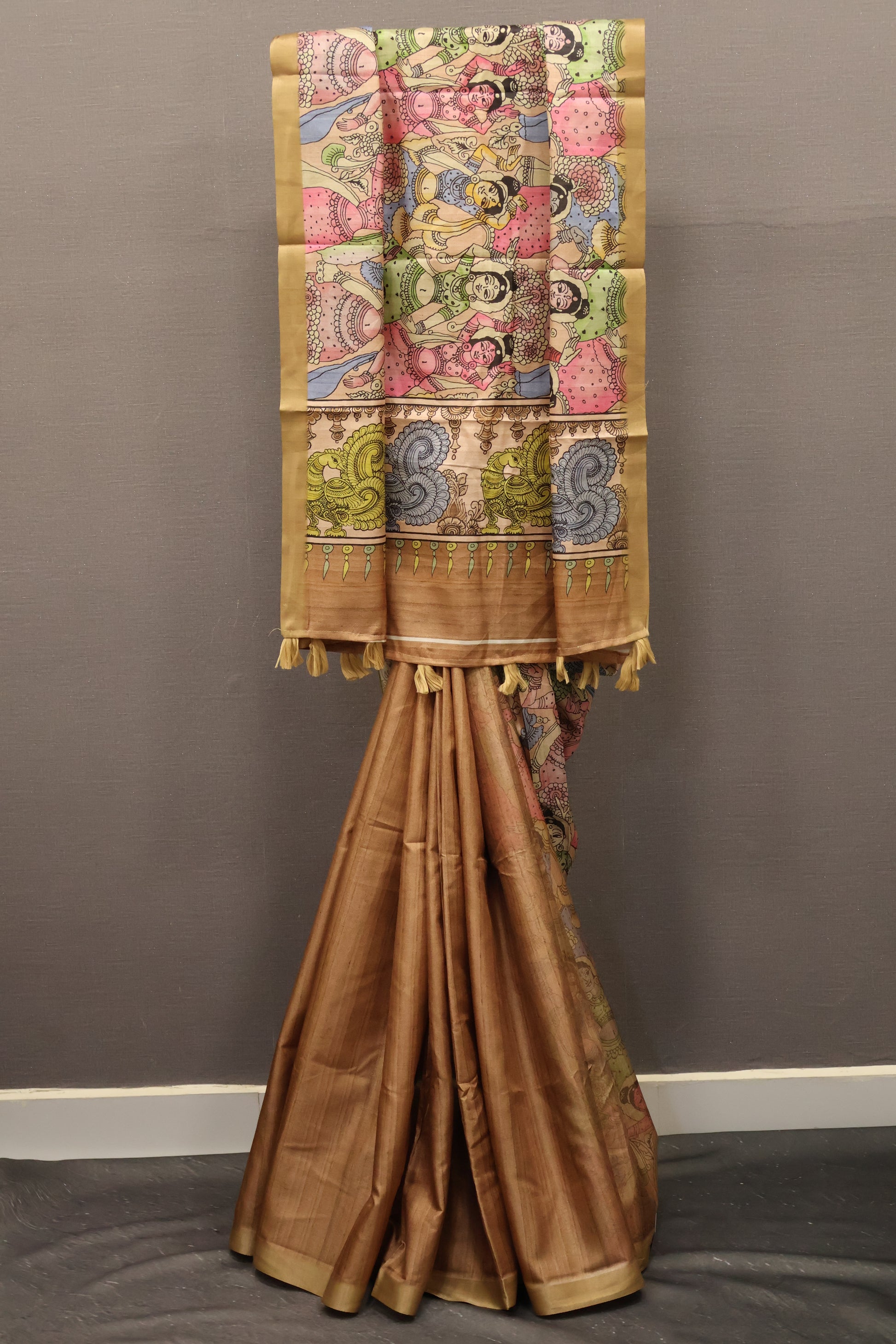 Art Mulberry Silk Saree-Sandal Penn Kalamkari