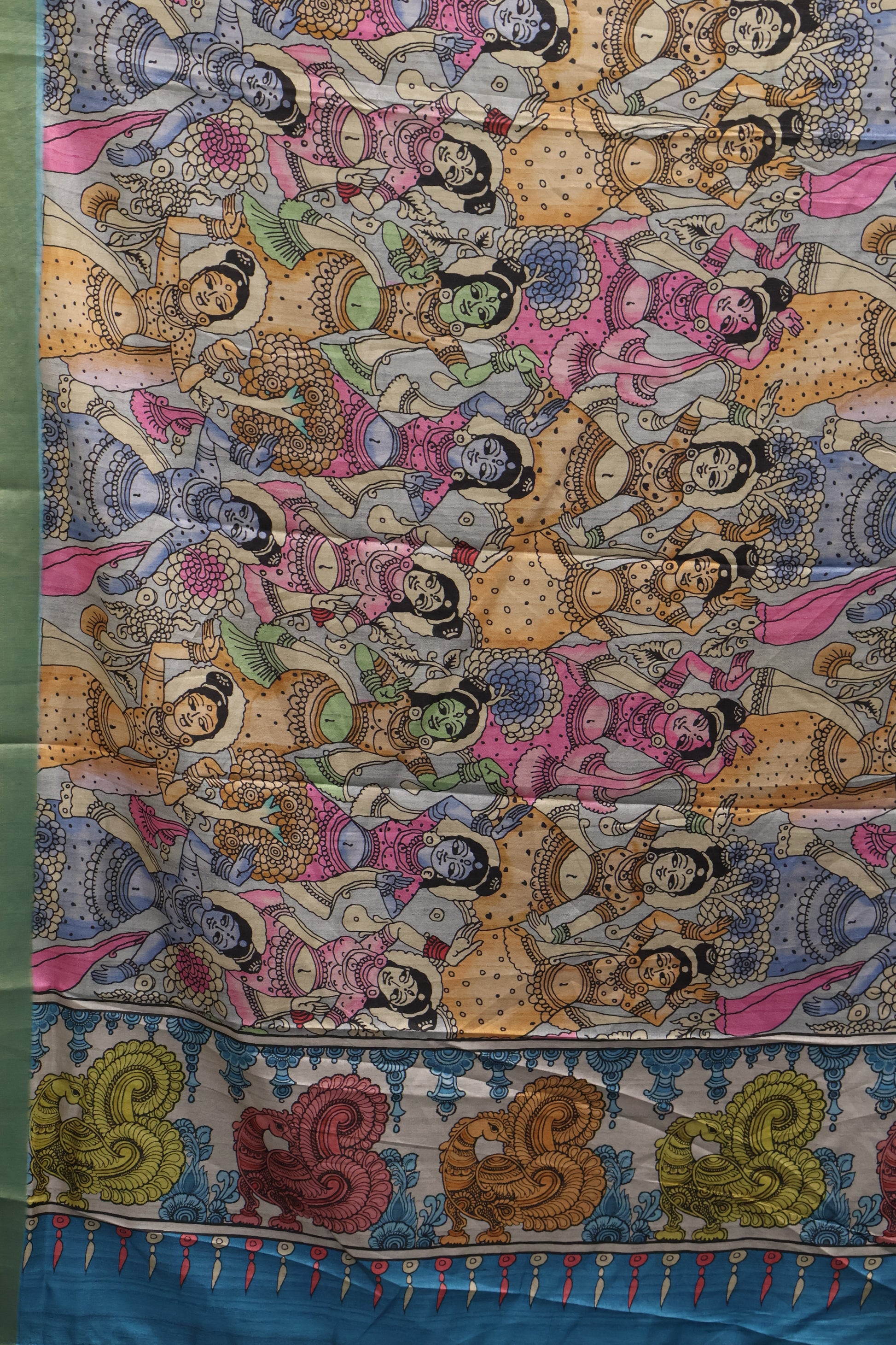 Art Mulberry Silk Saree-Sky Blue Penn Kalamkari