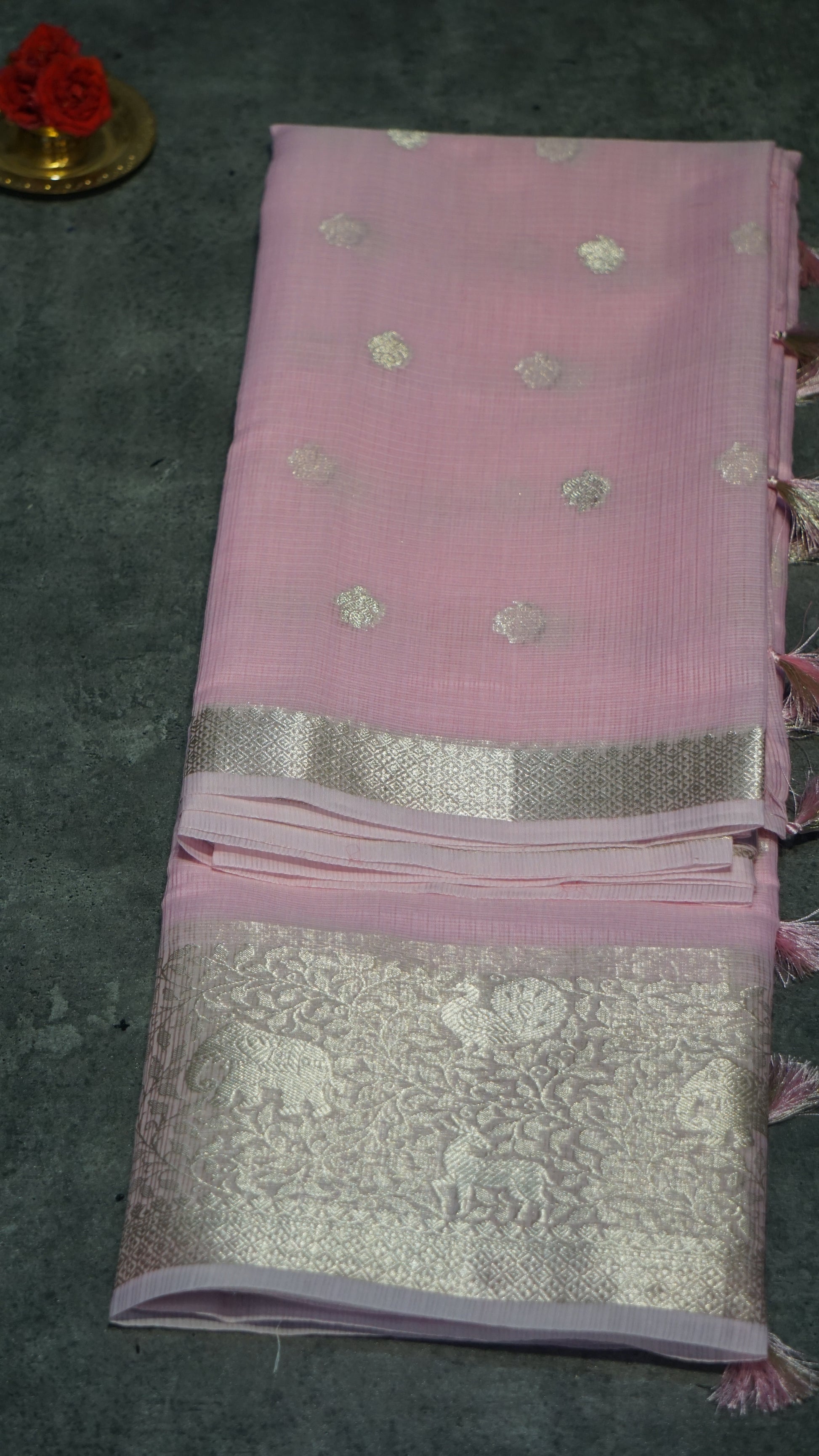 Art Zari Kota Pastel Saree Baby Pink