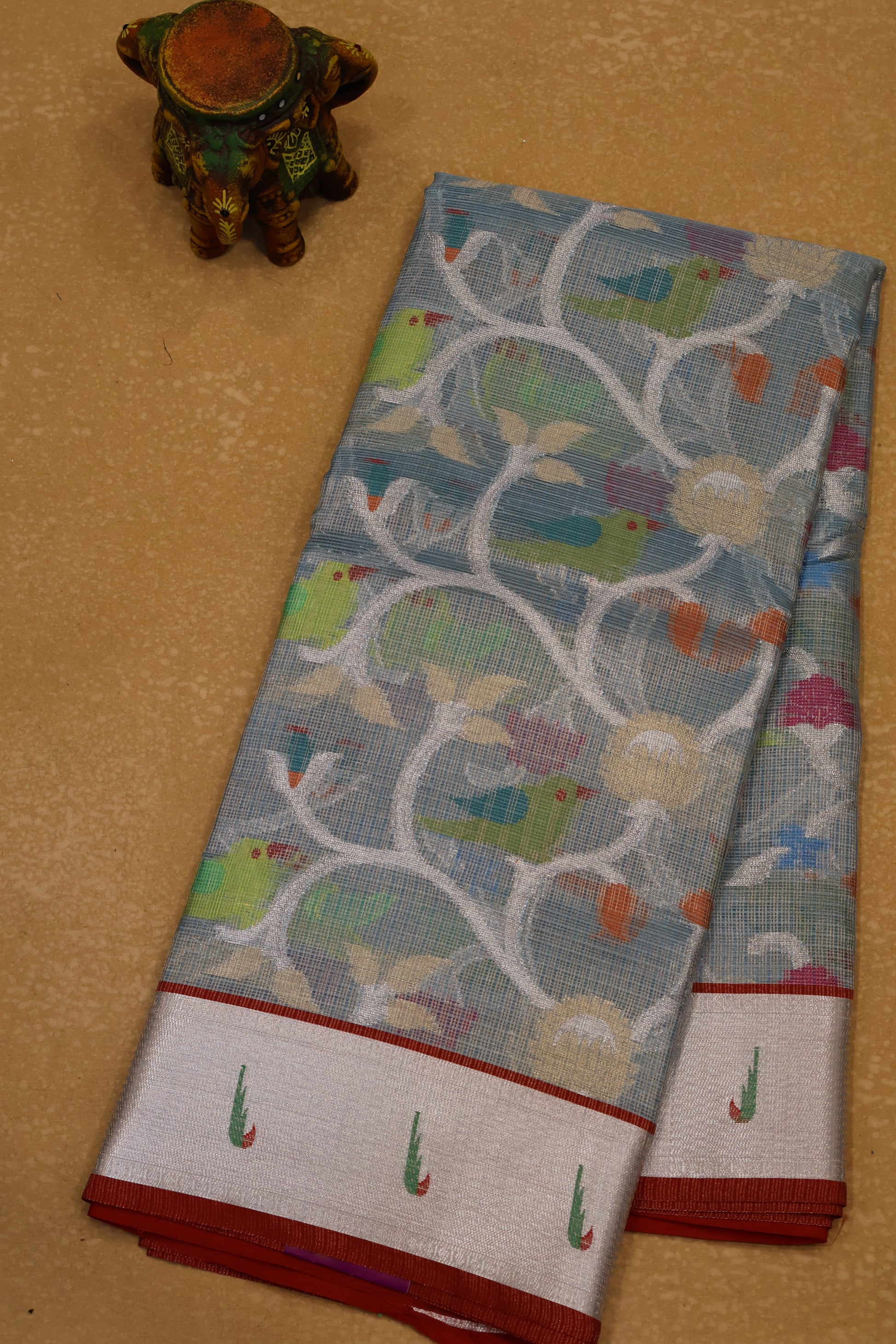Art Zari Kota Saree -Blue Silver