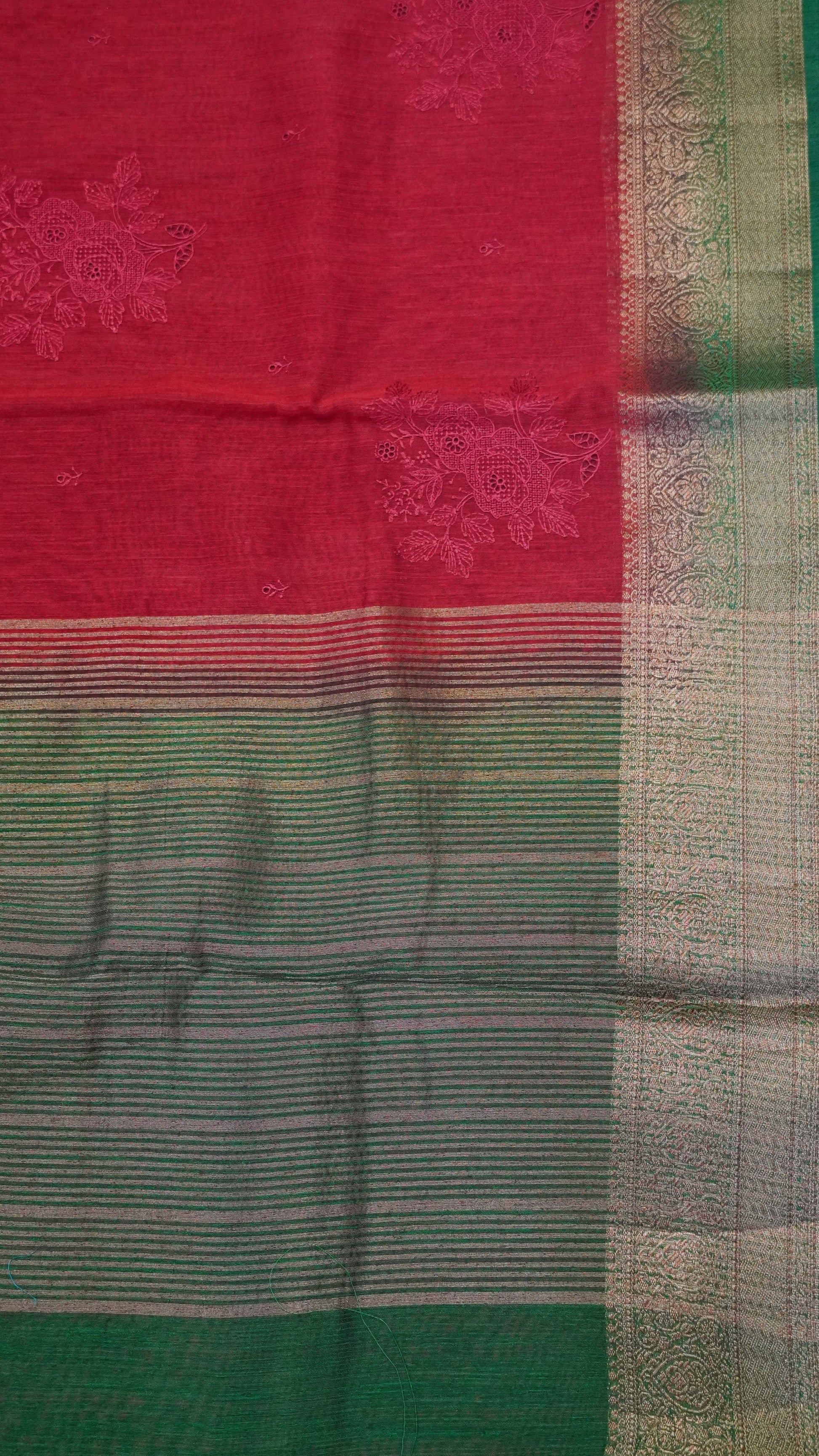 Bamboo Silk Saree-Red With Green