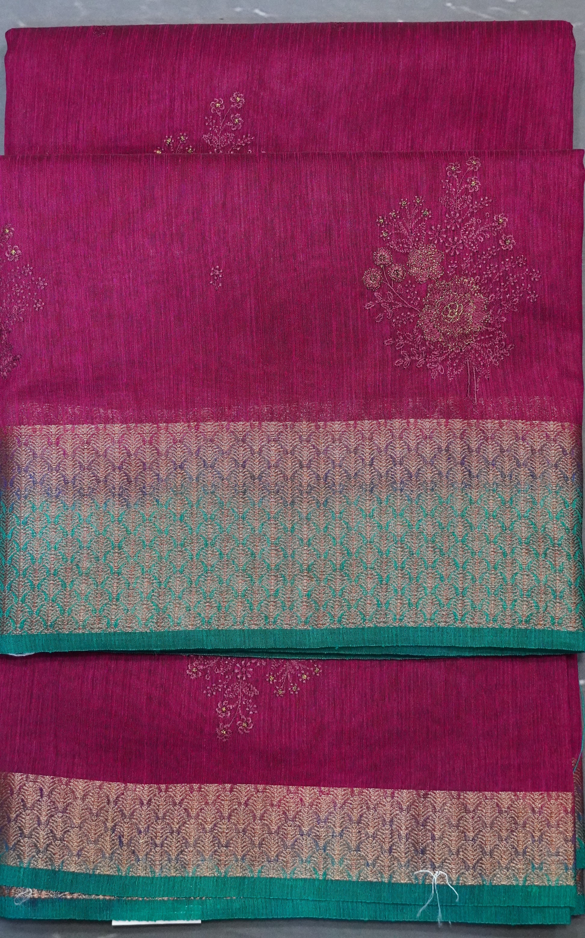 Bamboo Silk Saree-Wine Tree Zari embryoid Work