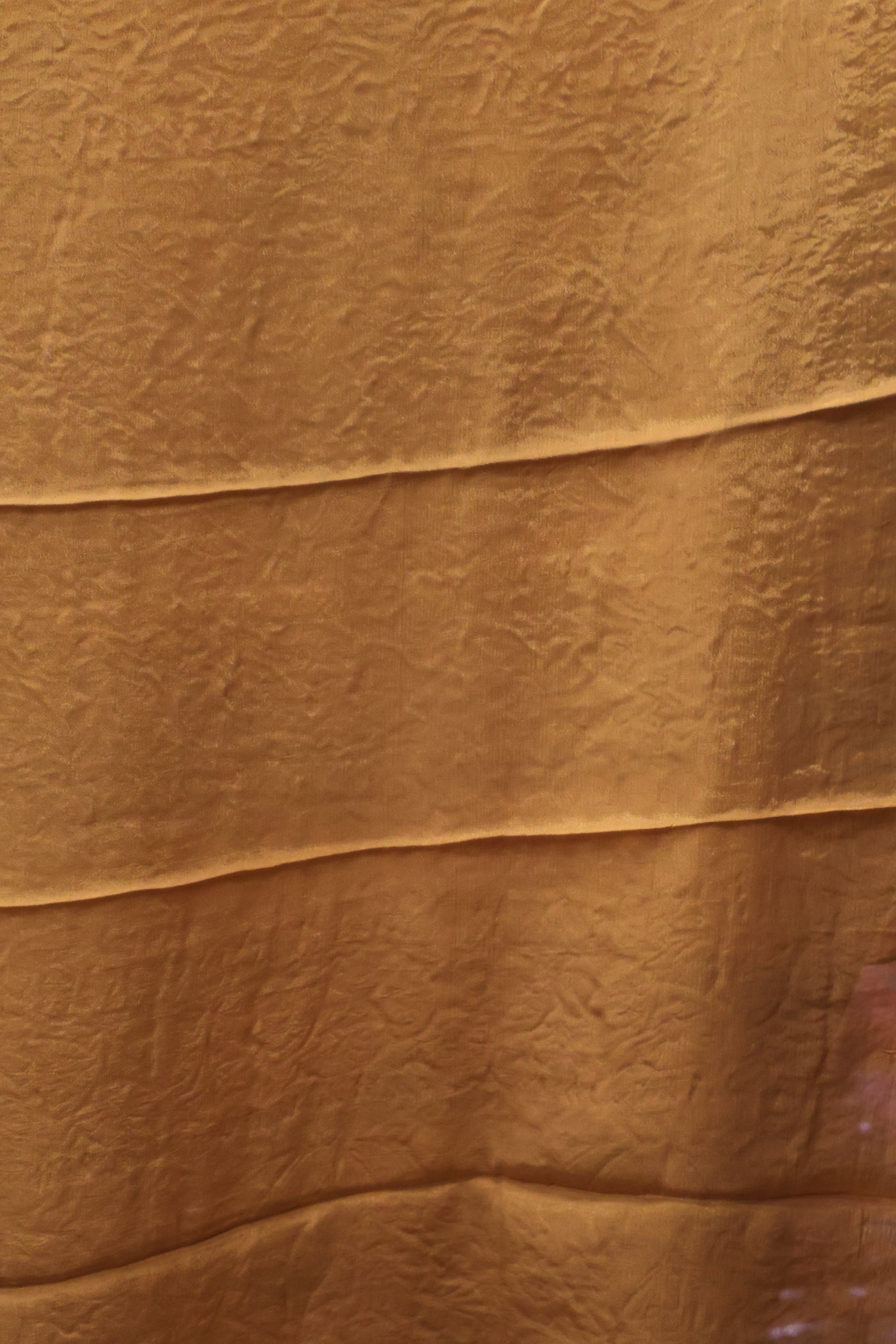 Banarasi Crepe Saree-Golden Brown Zig Zag Flower Border