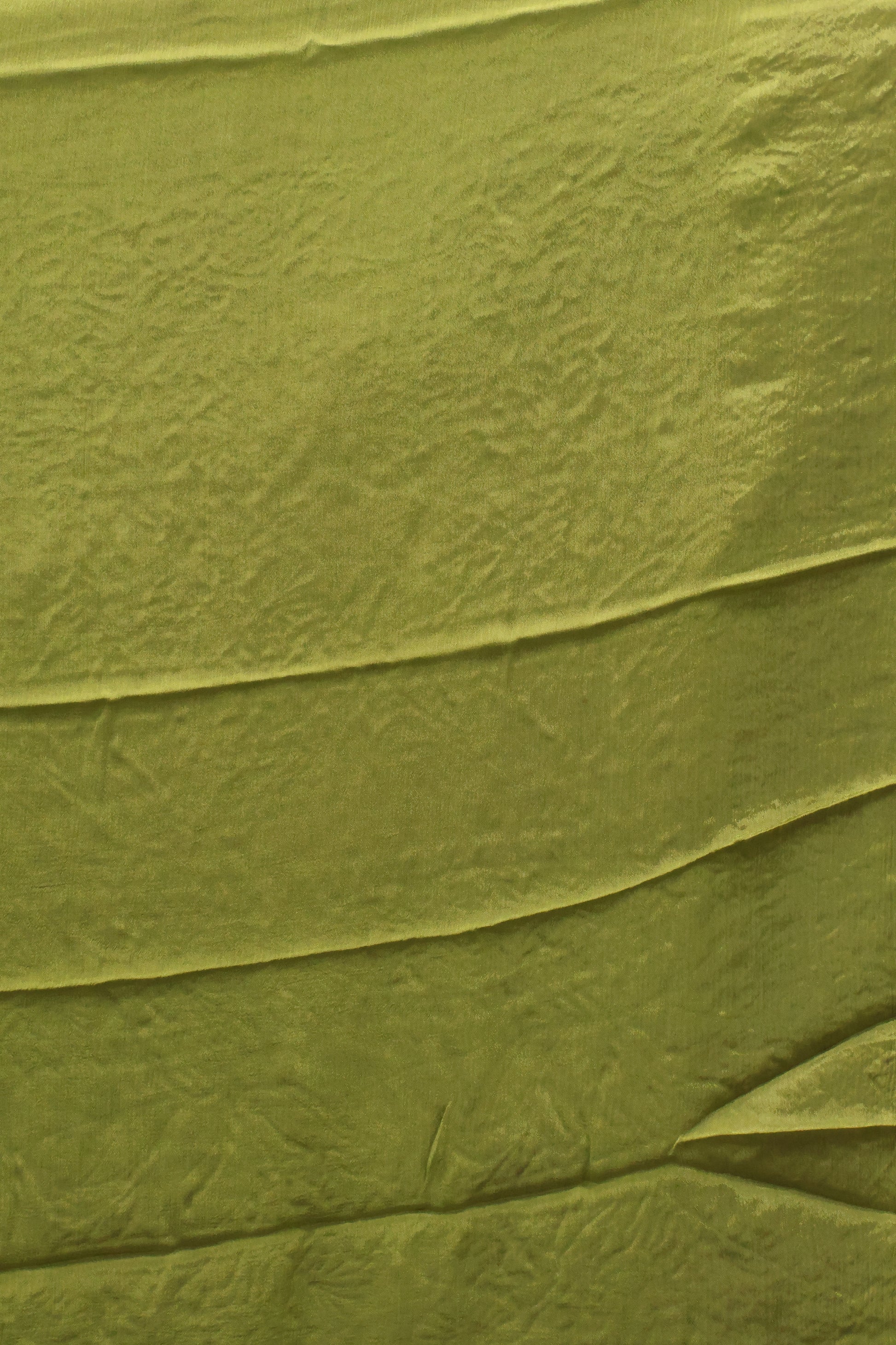 Banarasi Crepe Saree-Olive Green Zig Zag Flower Border