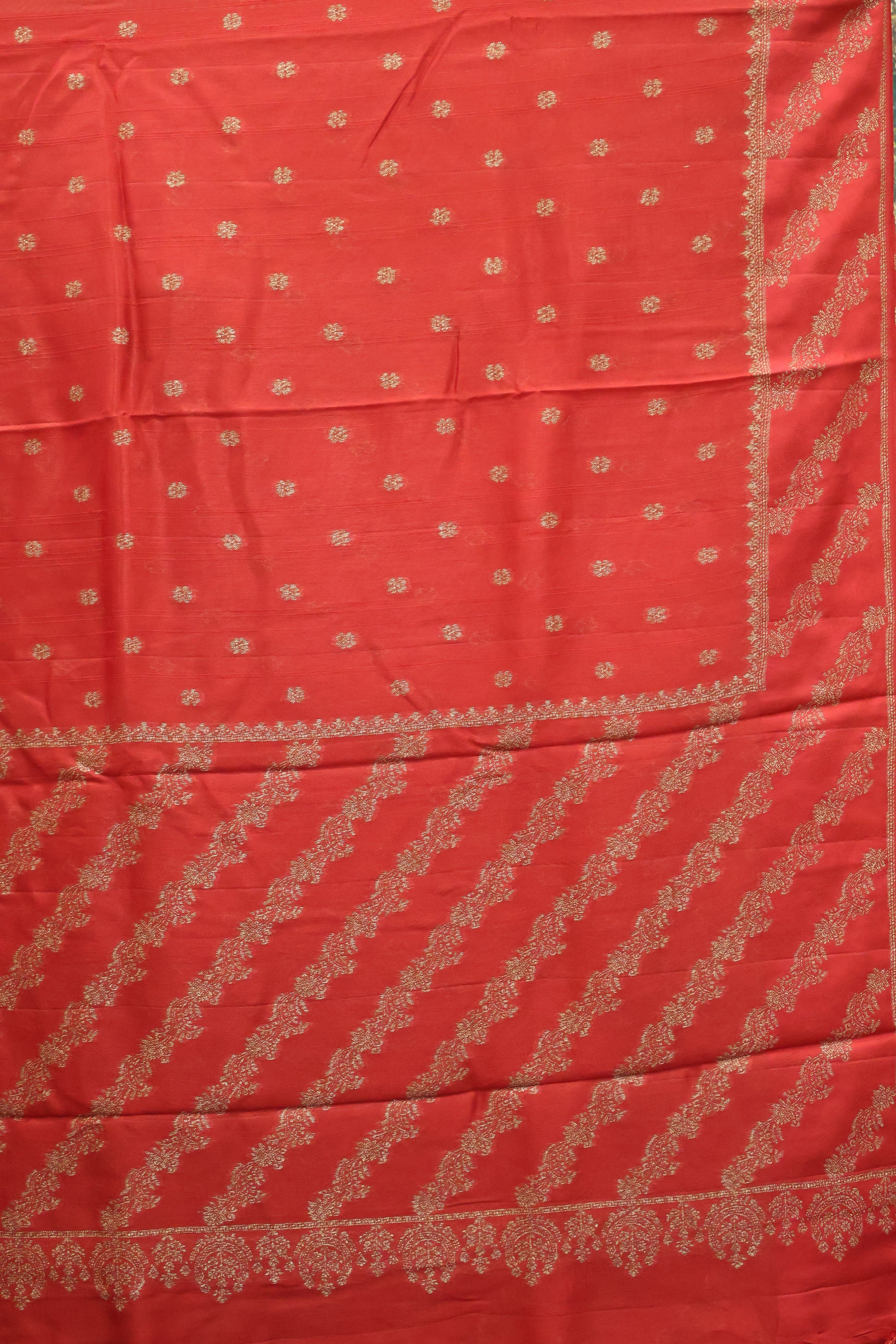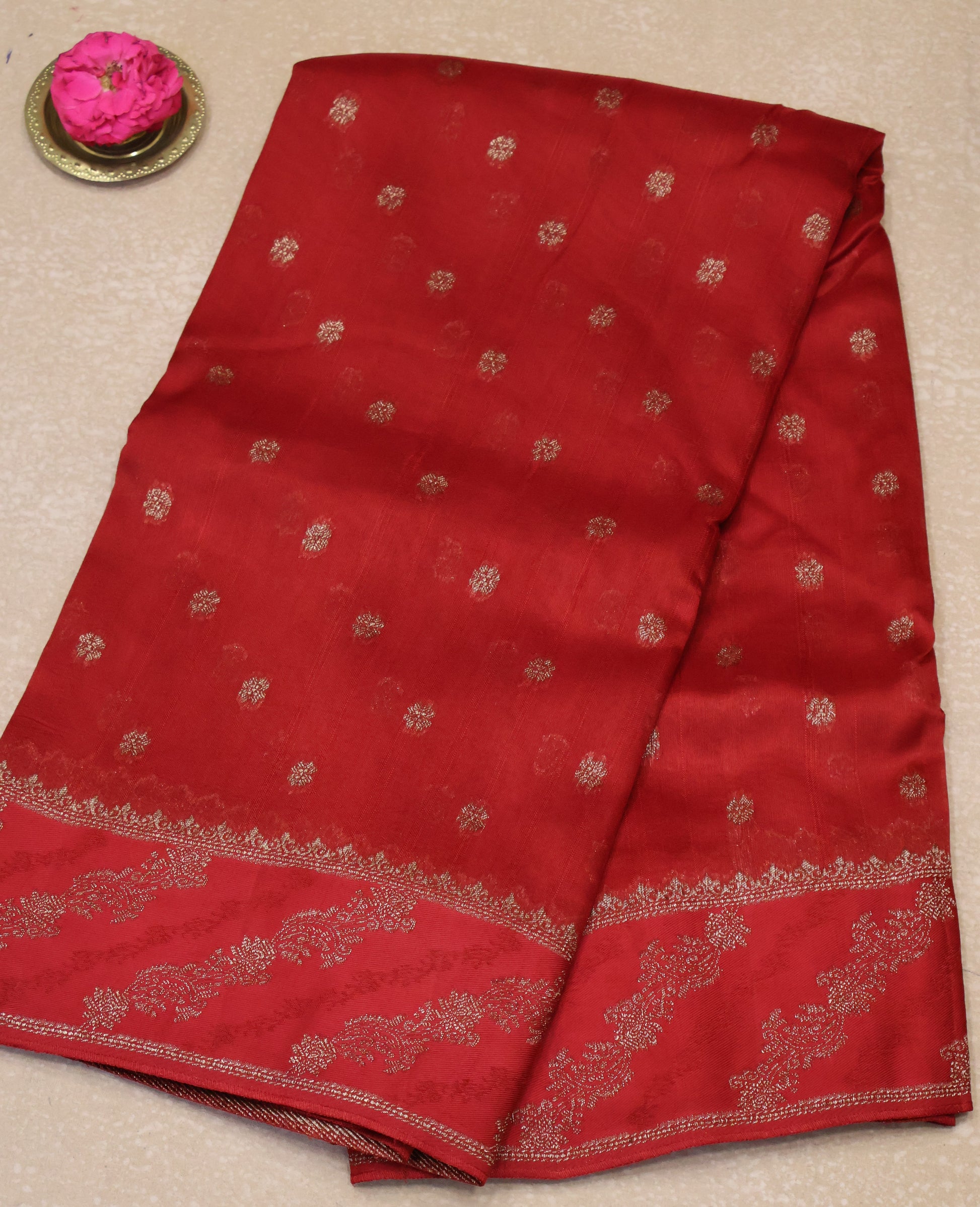 Banarasi Tussar -Brick Red Flower Border