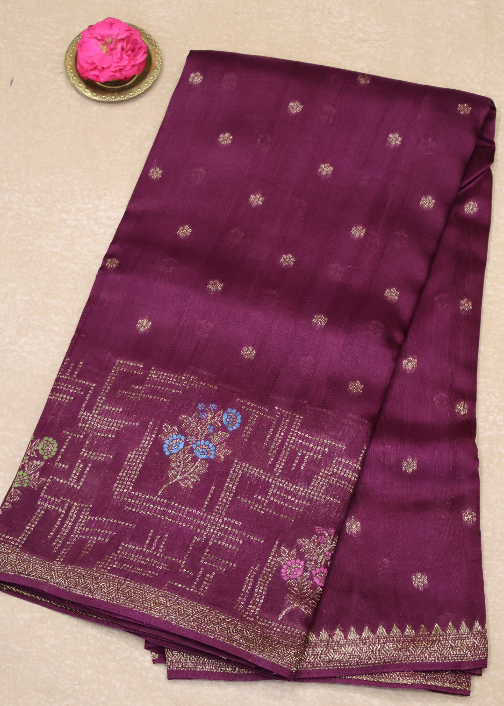 Banarasi Tussar -Arakku Geometric Border