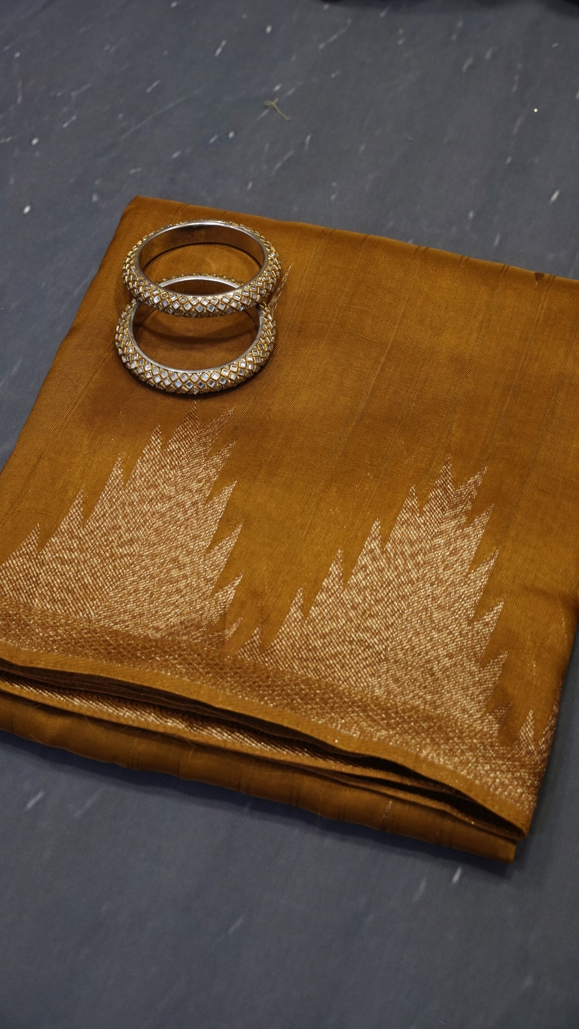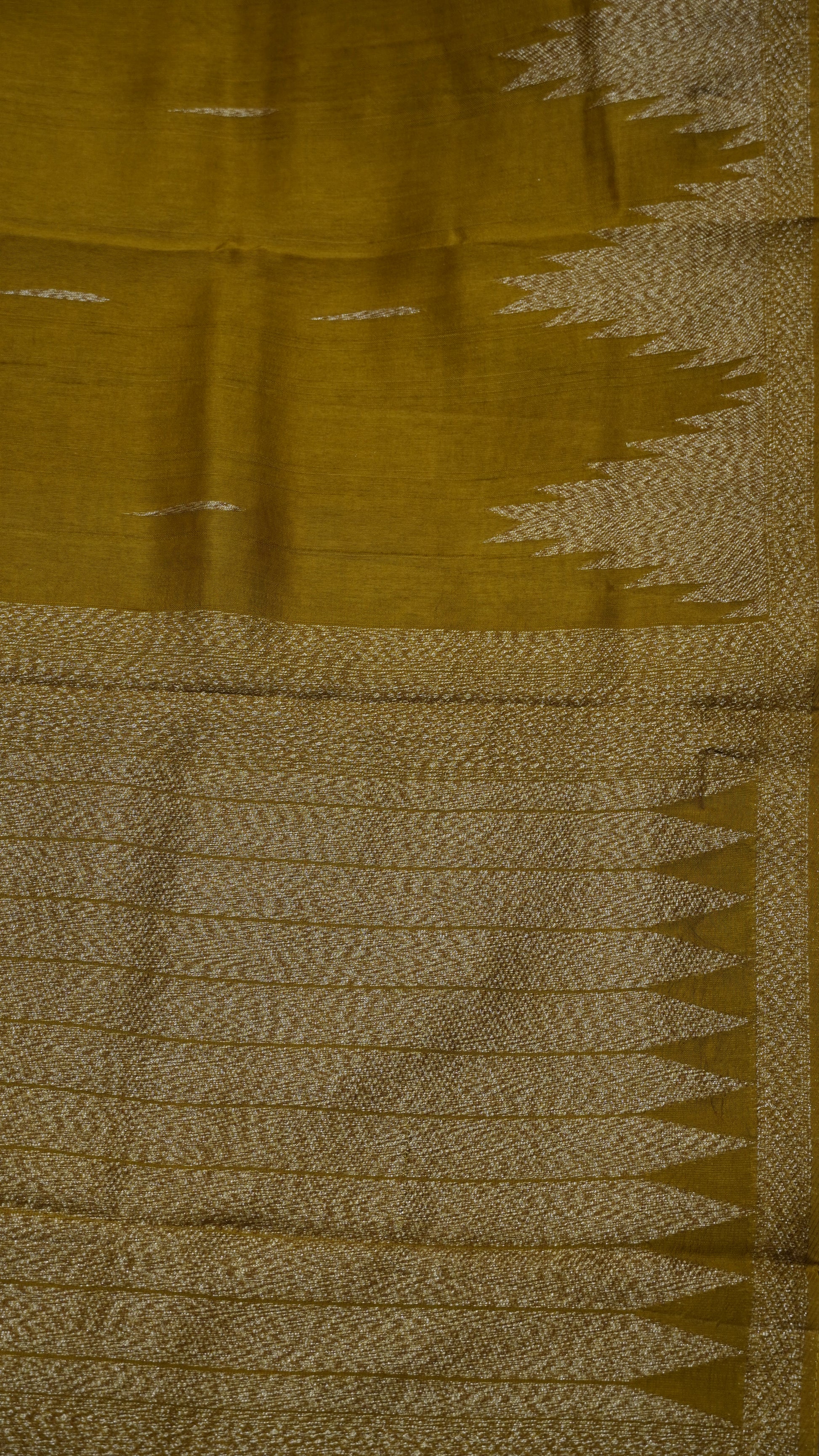 Banarasi Tussar - Tower Border Mehndi Green
