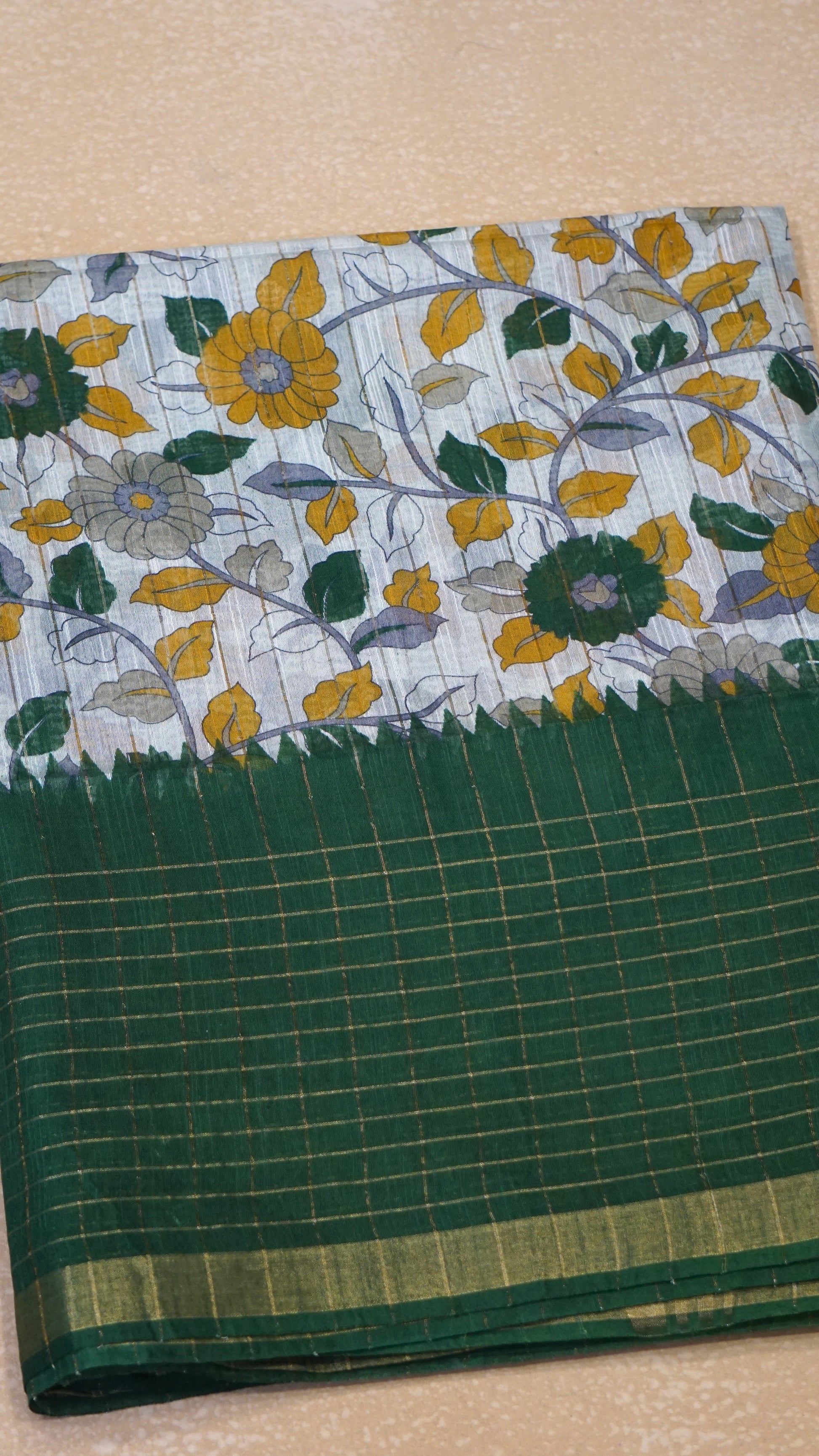 Bhagalpur Tussar Saree Kalamkari Print - Bottle Green