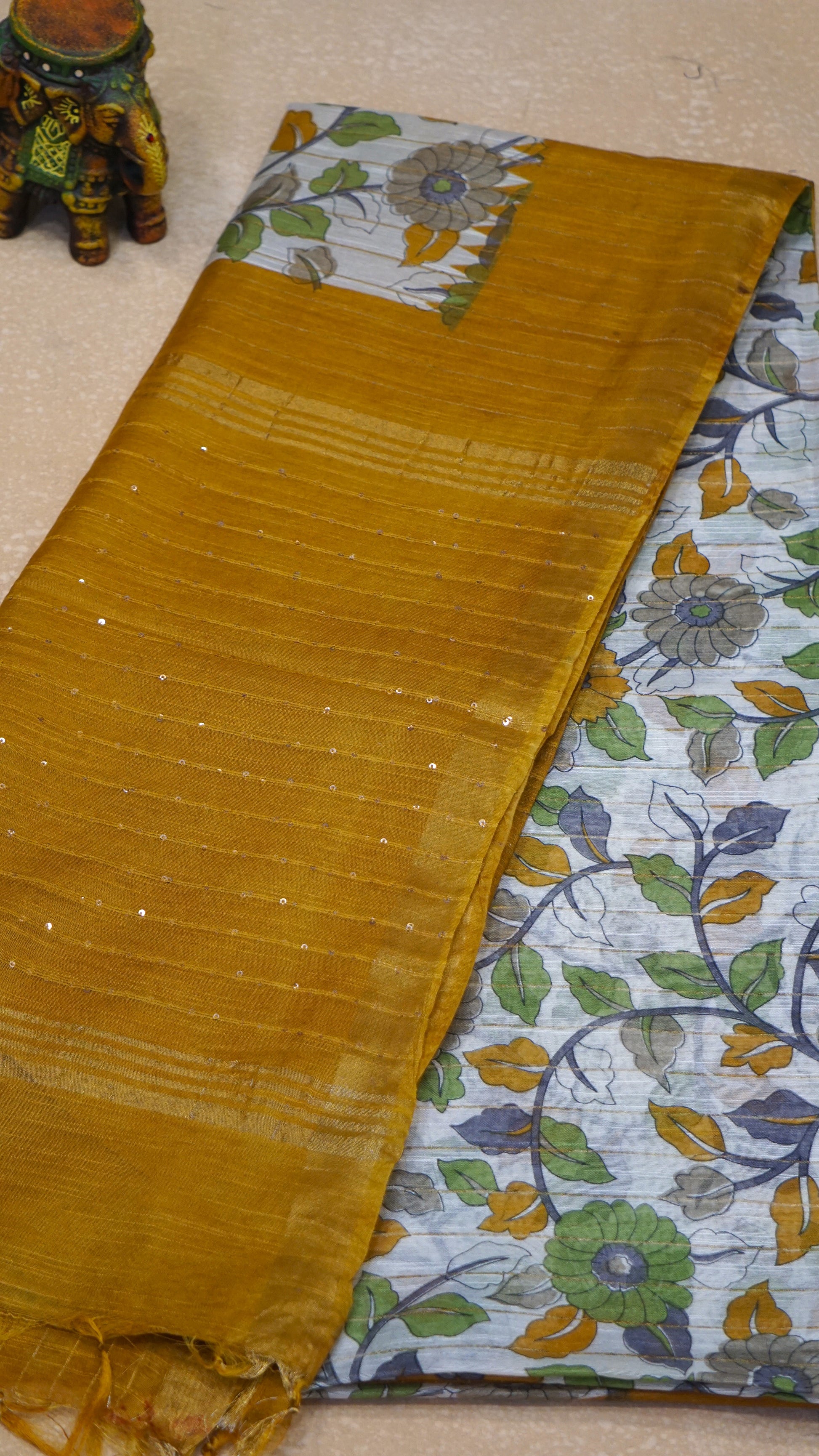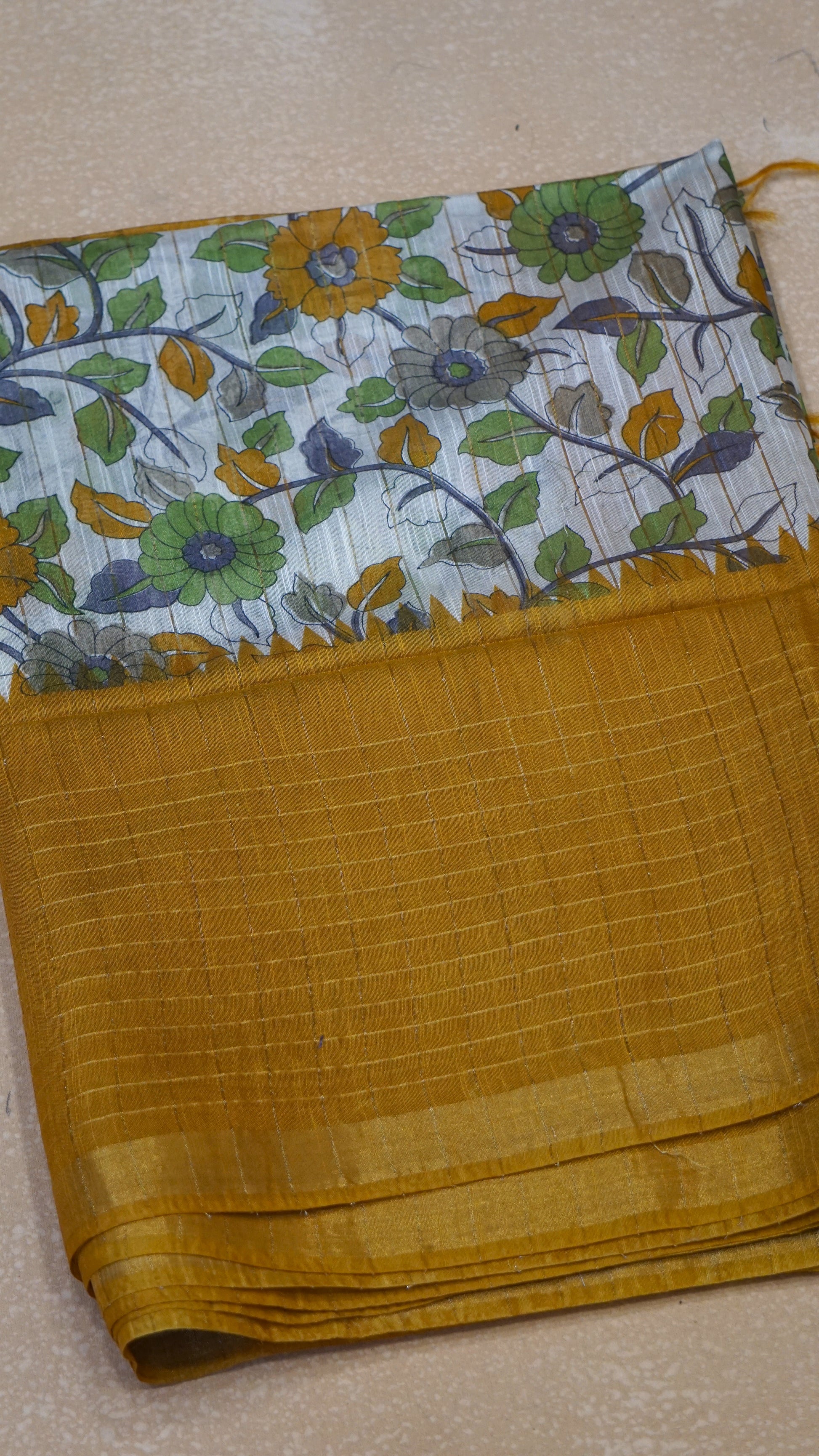 Bhagalpur Tussar Saree Kalamkari Print - Mustard Yellow