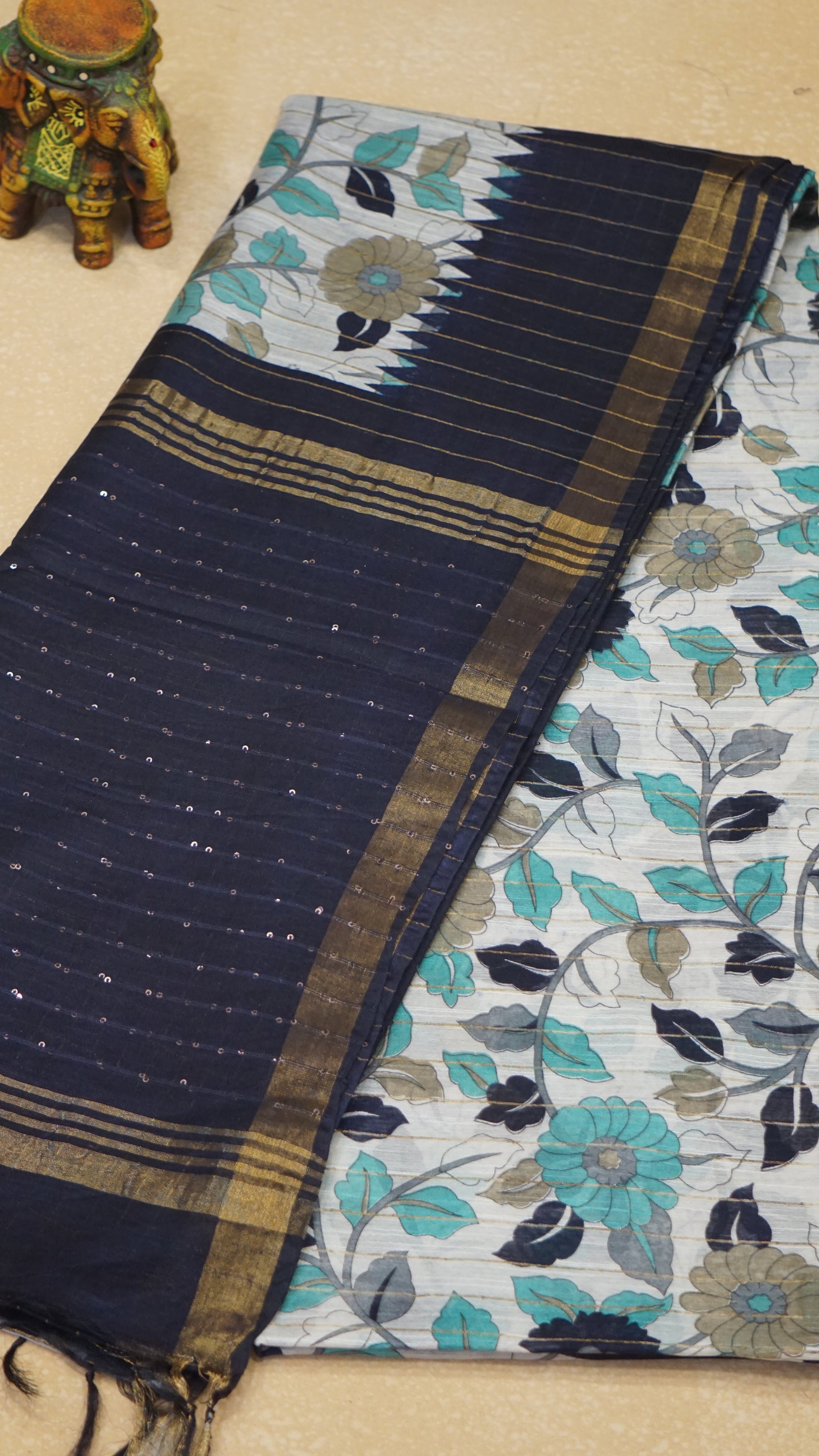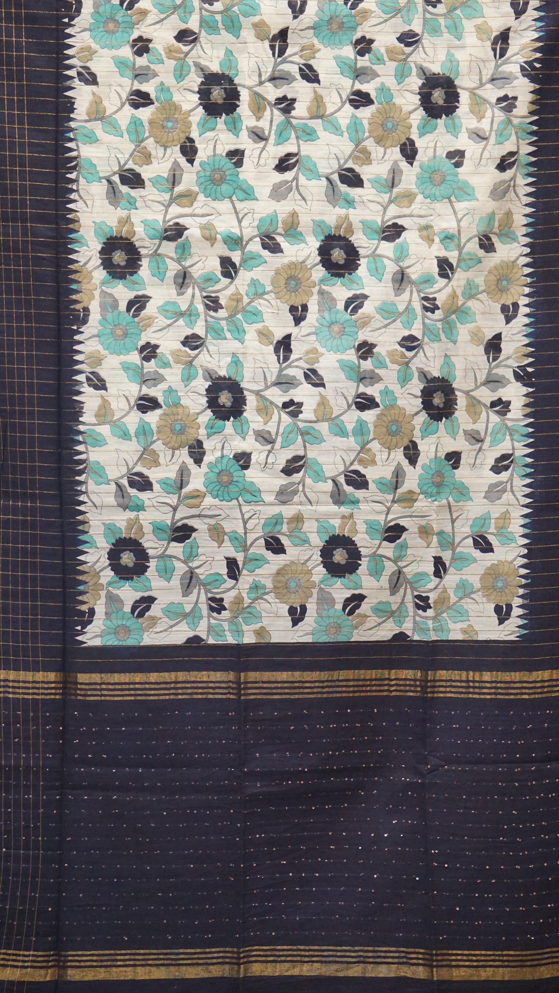 Bhagalpur Tussar Saree Kalamkari Print - Navy Blue