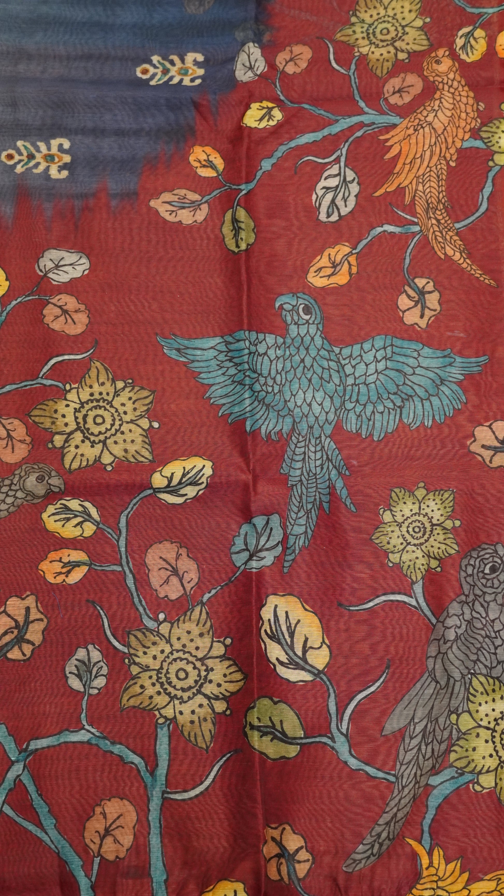 Chanderi Cotton Saree-Eagle Print-Maroon