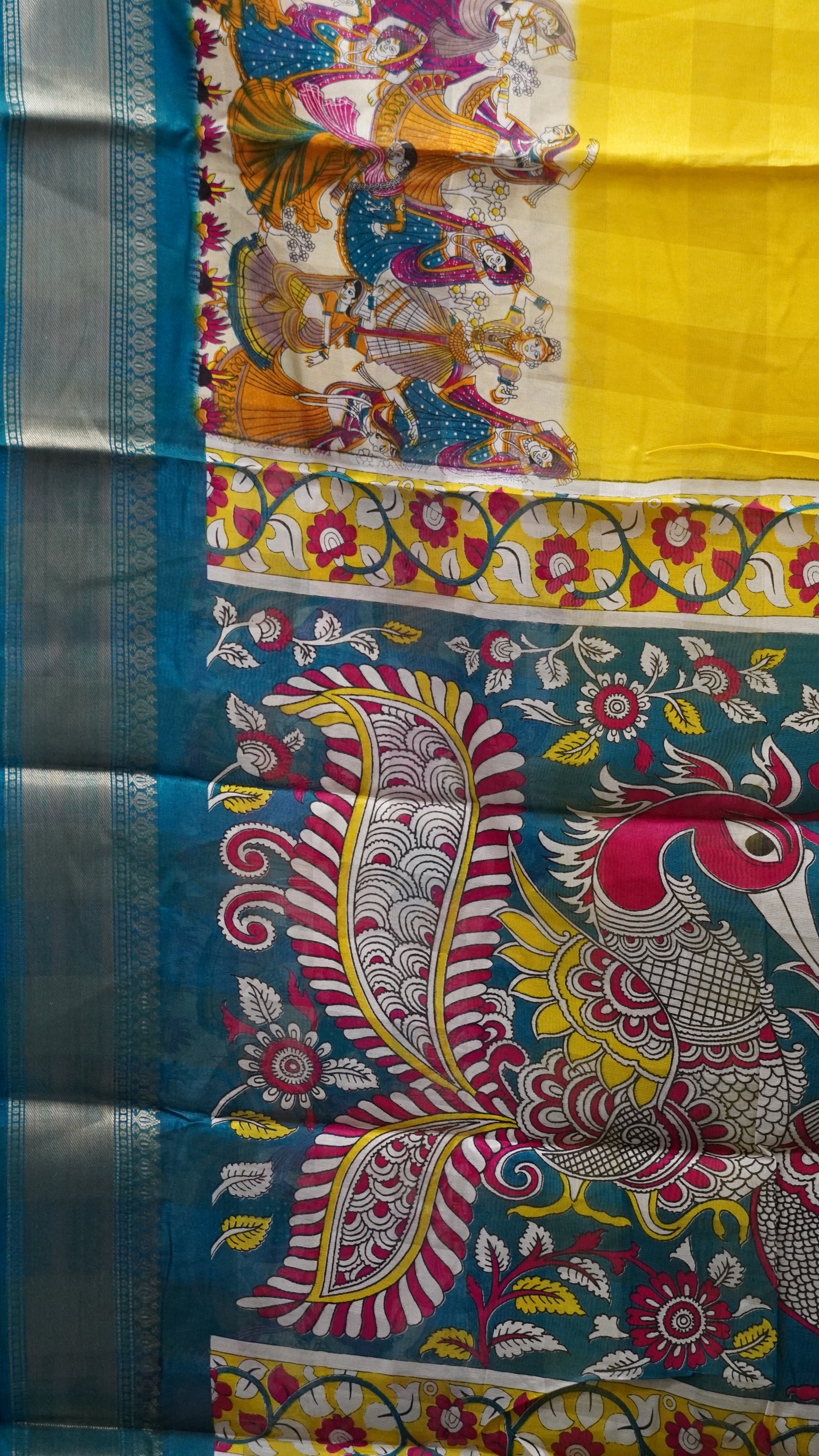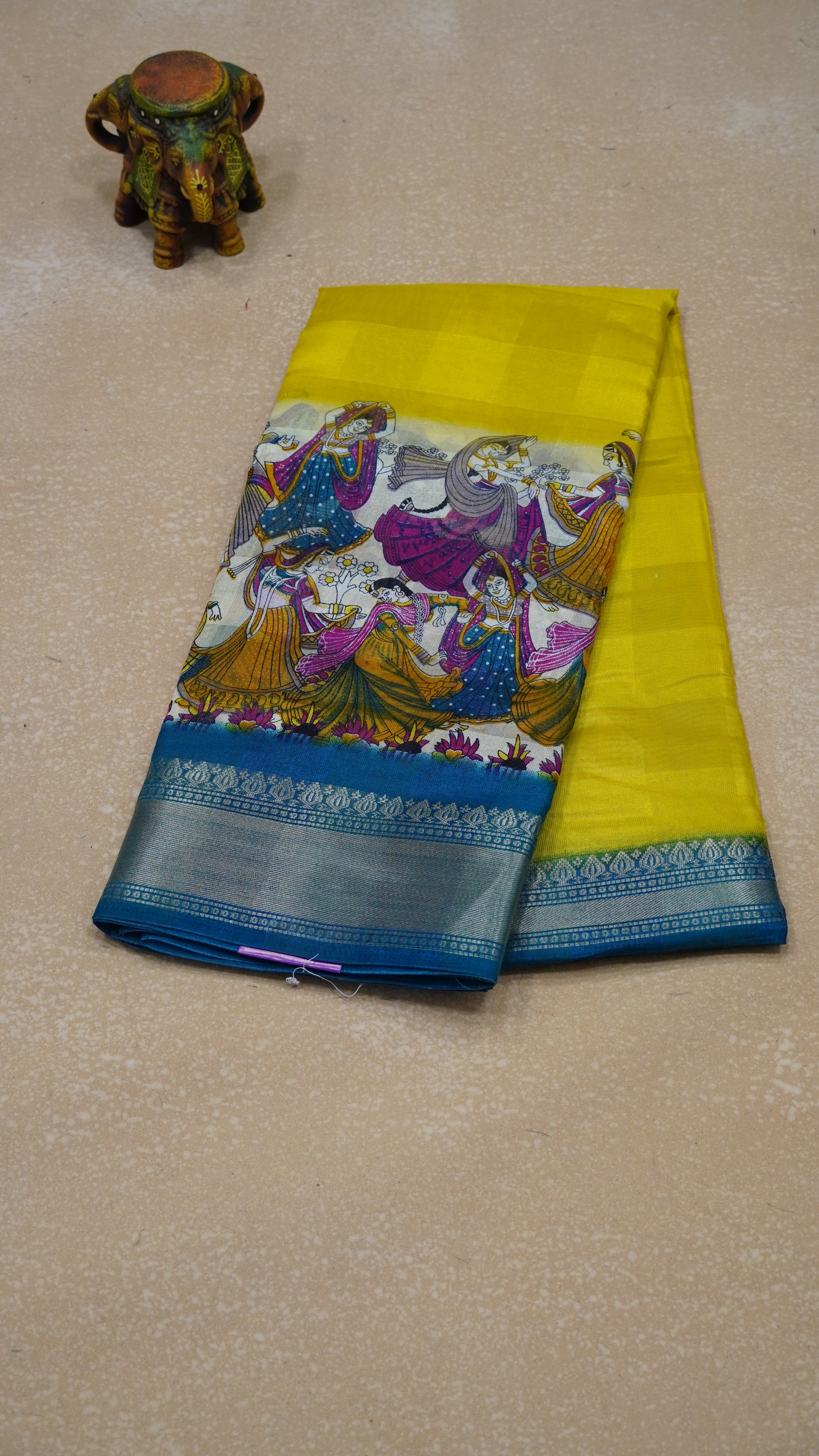 Chanderi Saree Figure Print - Yellow