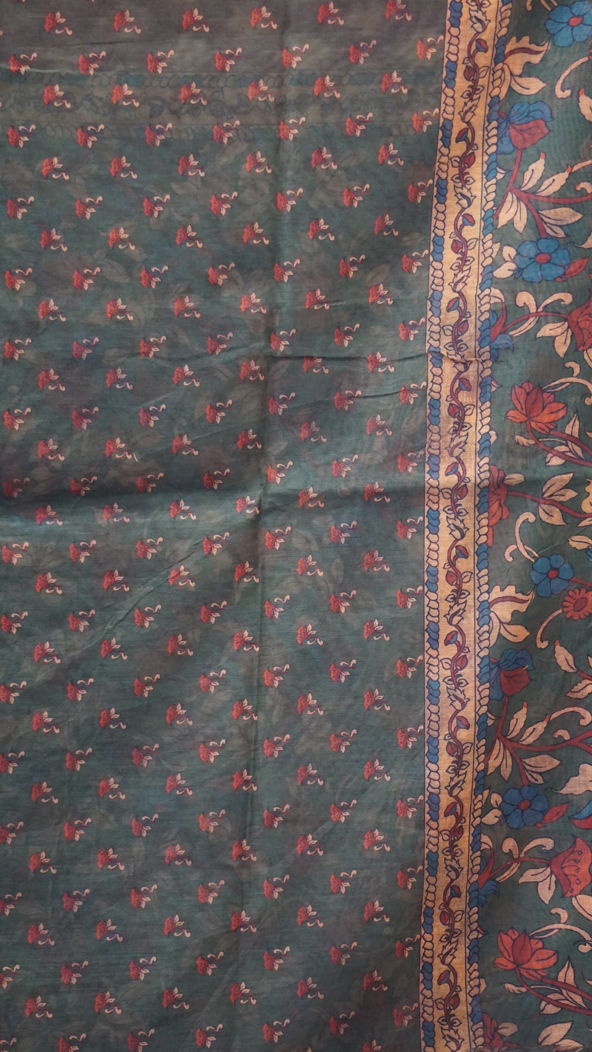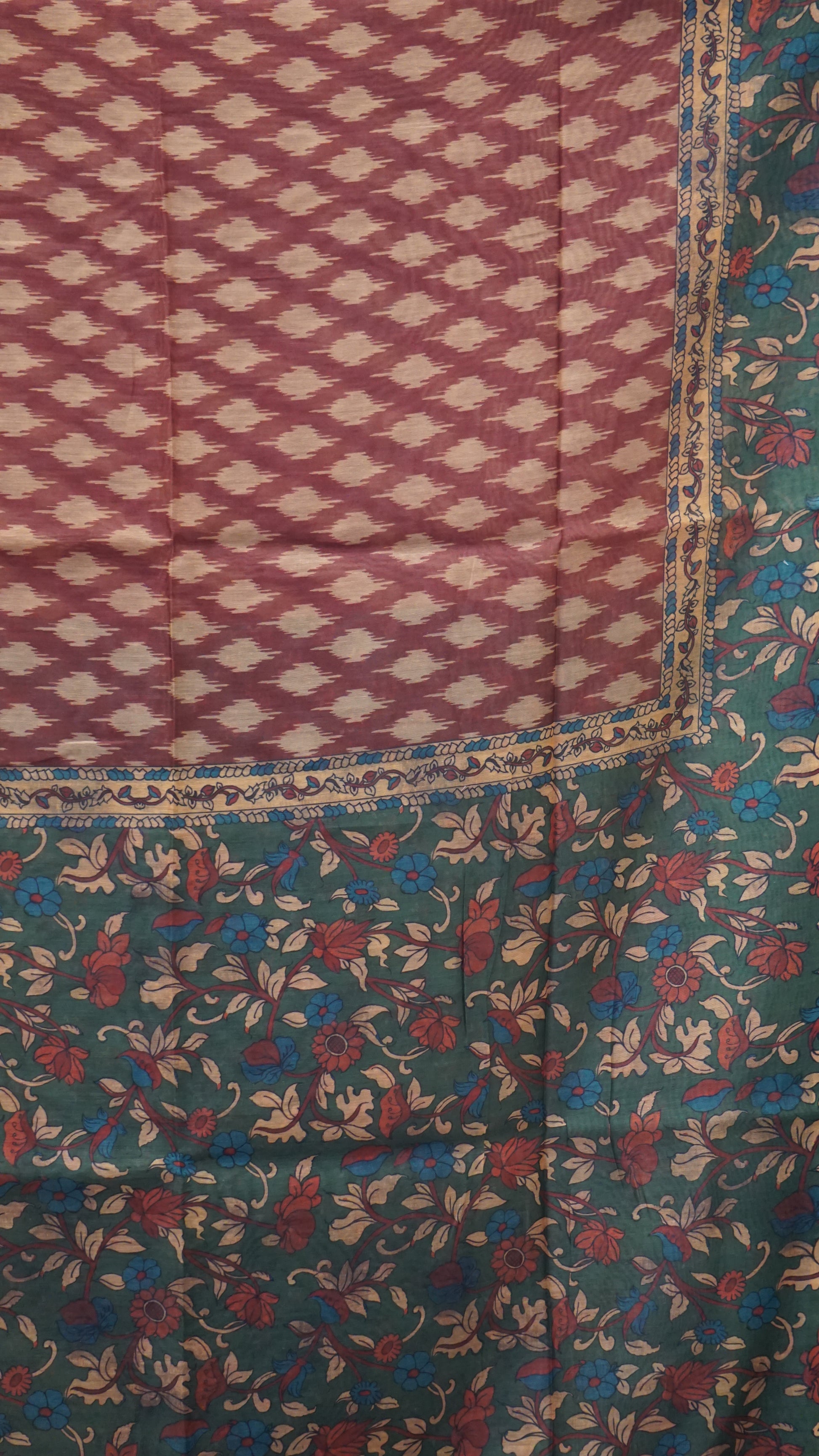Chanderi Saree Ikkatkari Print - Green & Maroon