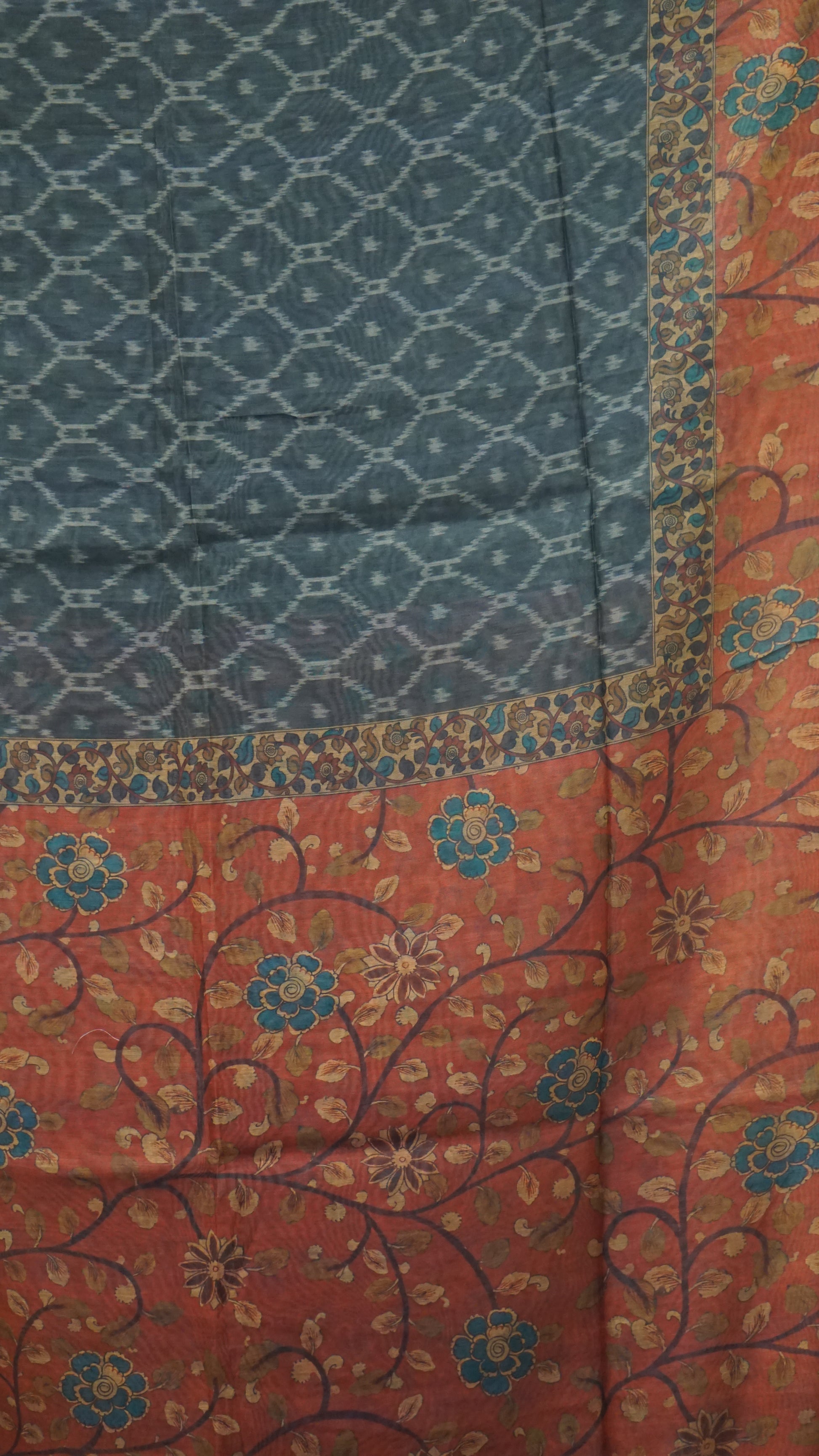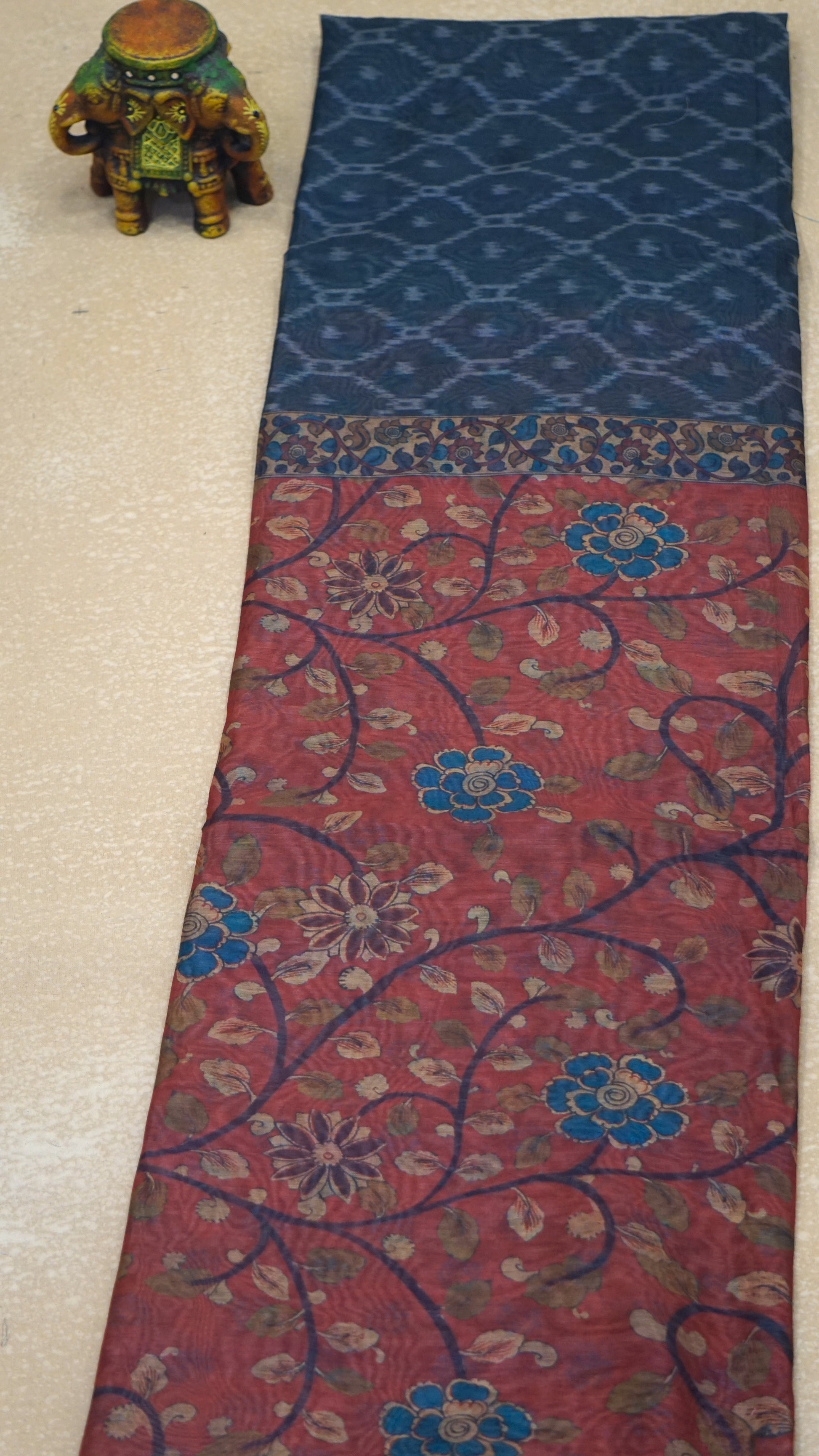 Chanderi Saree Ikkatkari Print - Maroon & Black