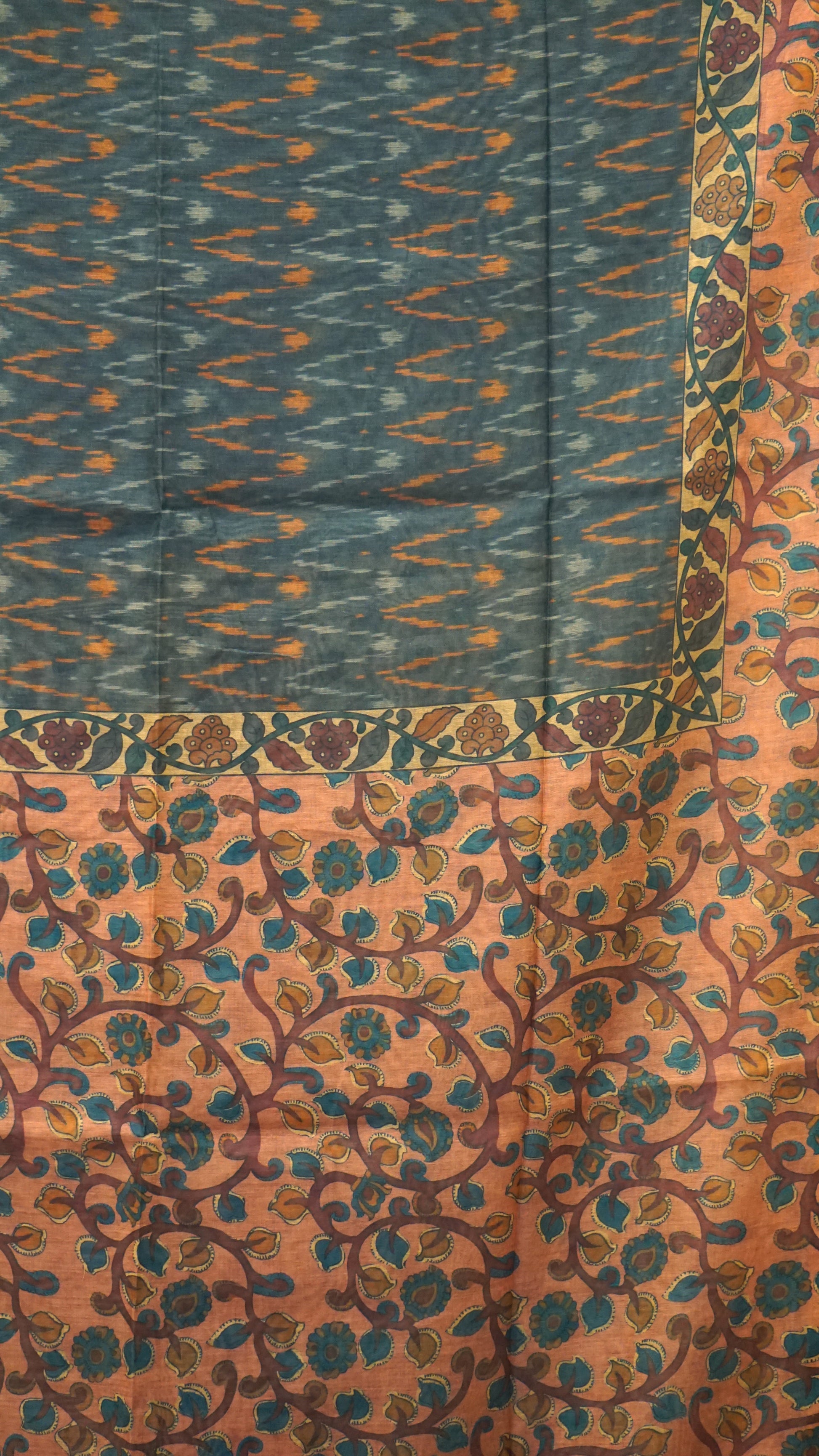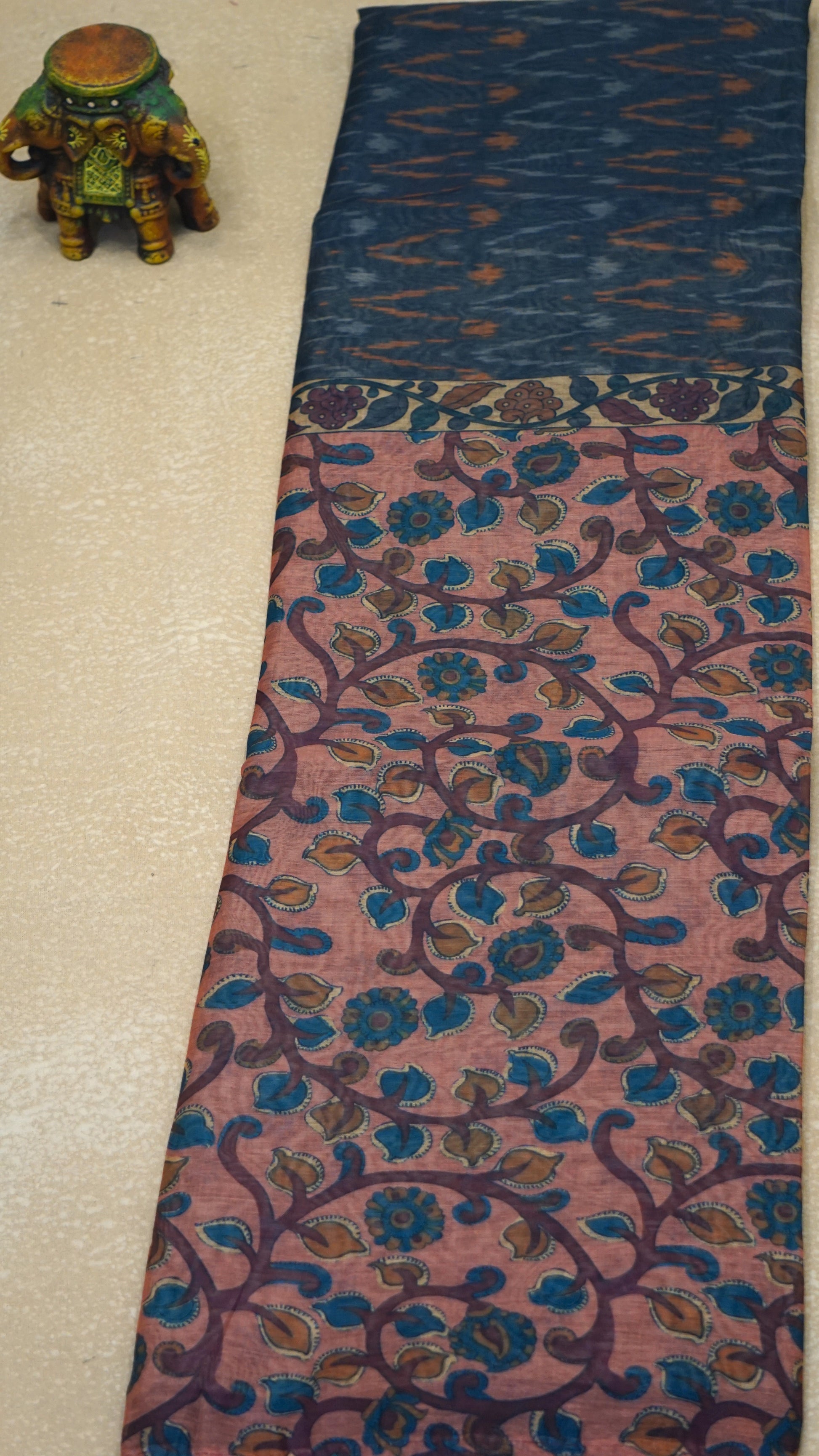 Chanderi Saree Ikkatkari Print - Onion Pink & Grey