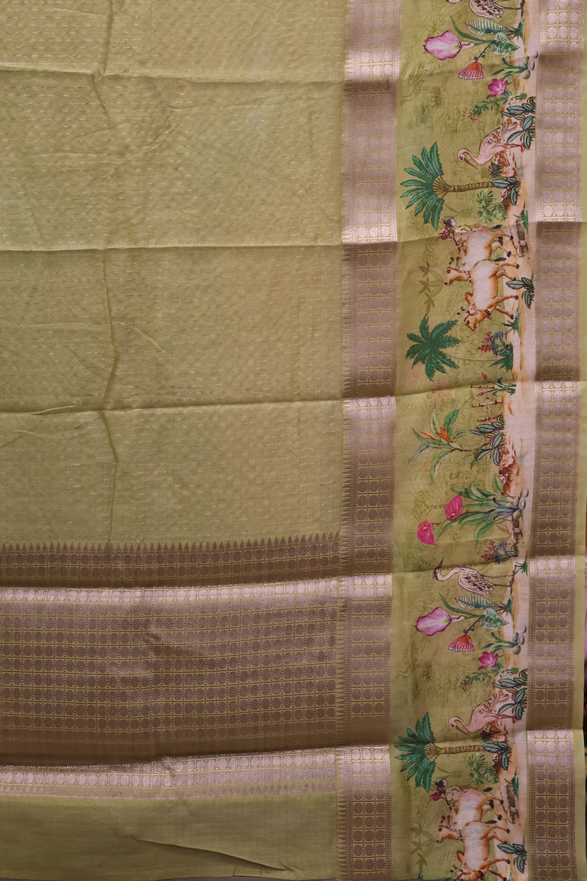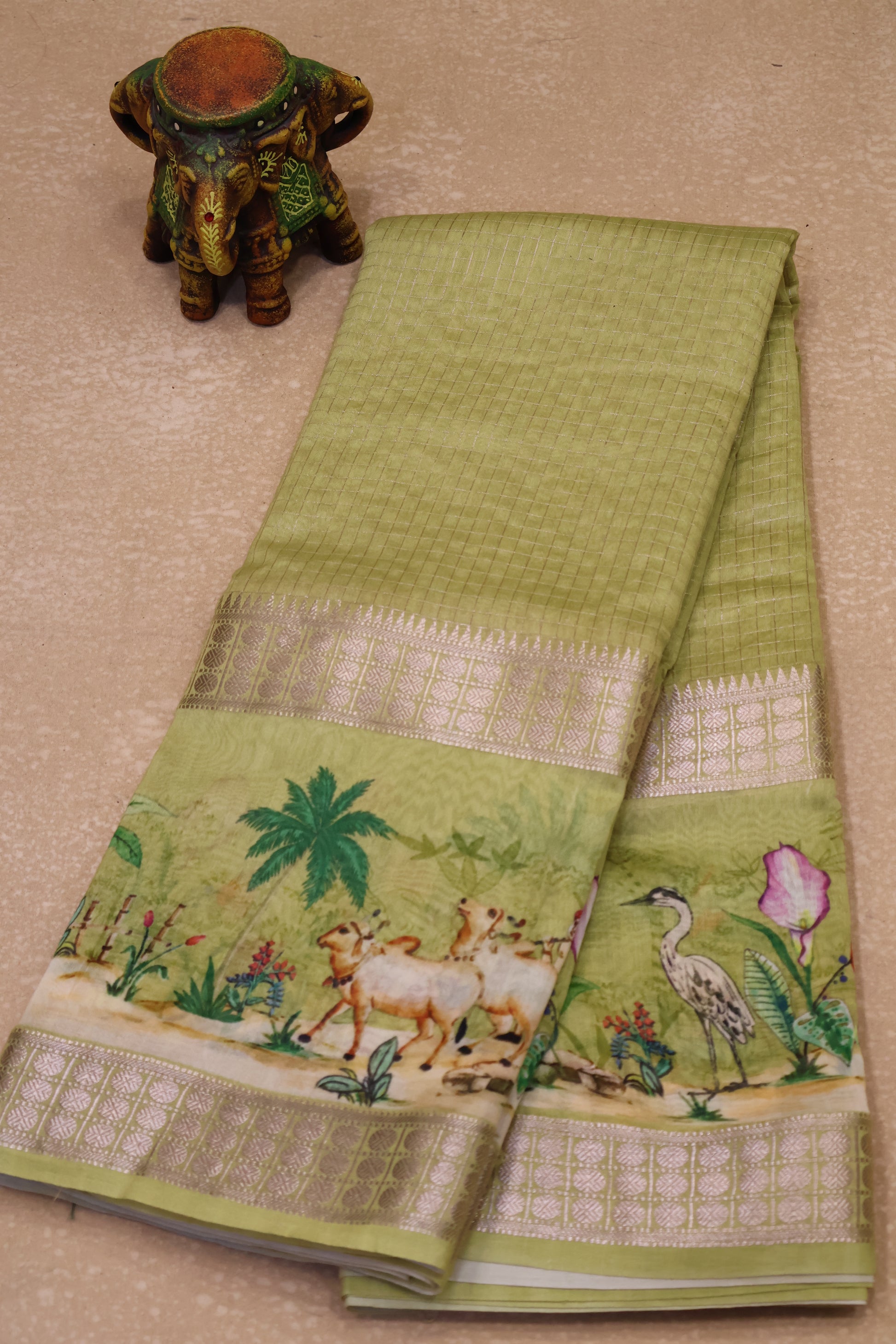 Chanderi Saree Pichwai Print -Lemon Yellow