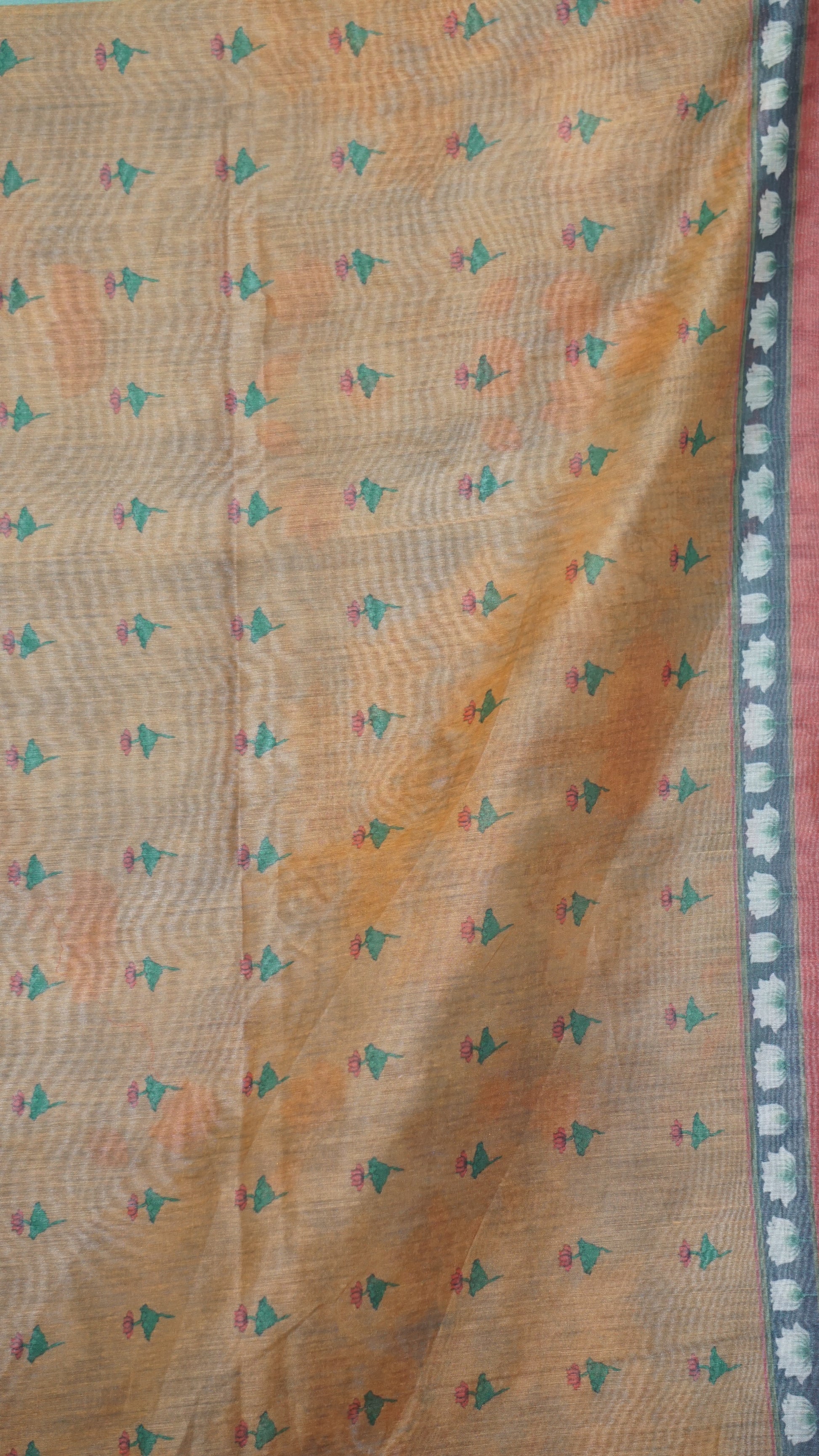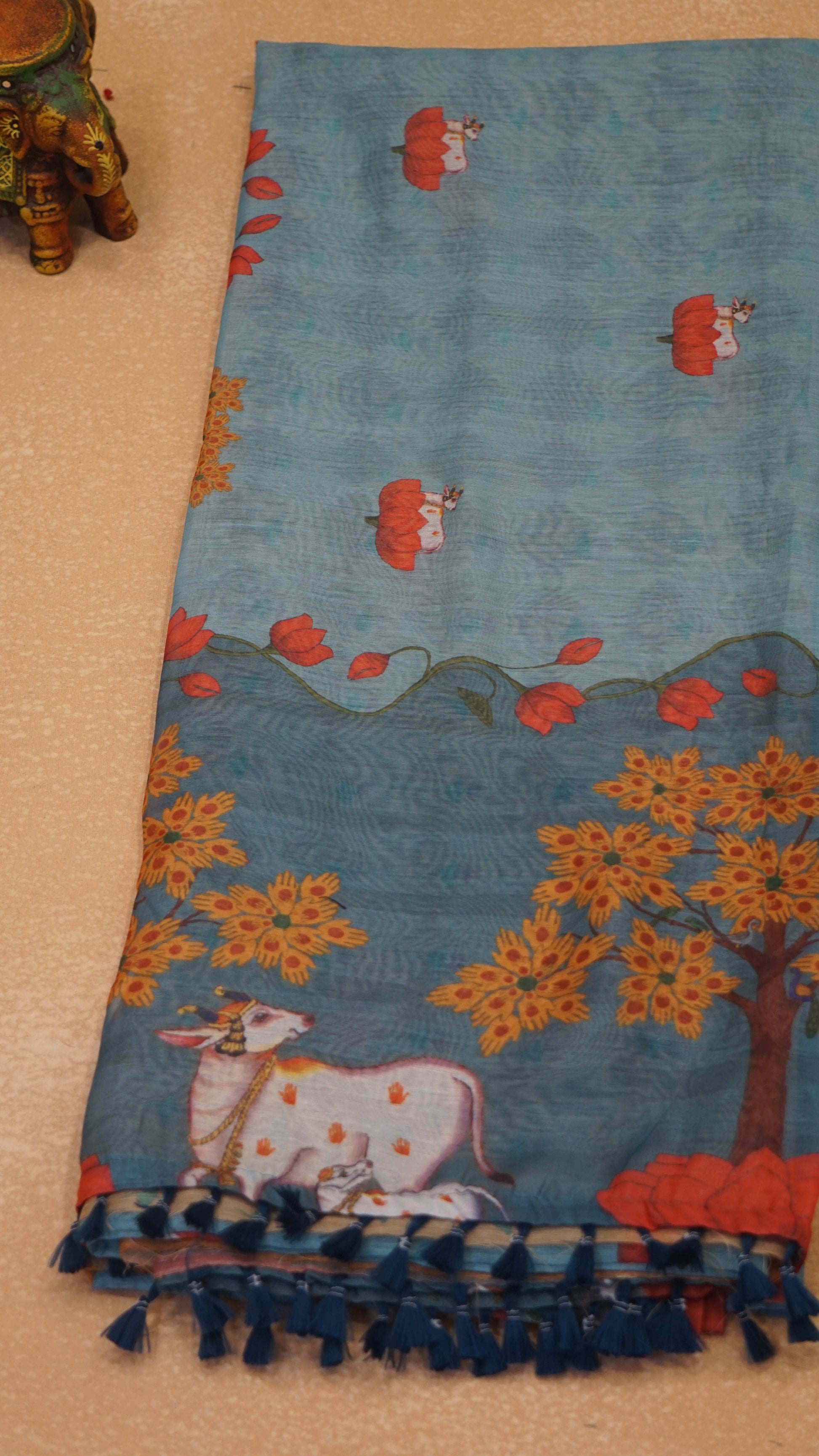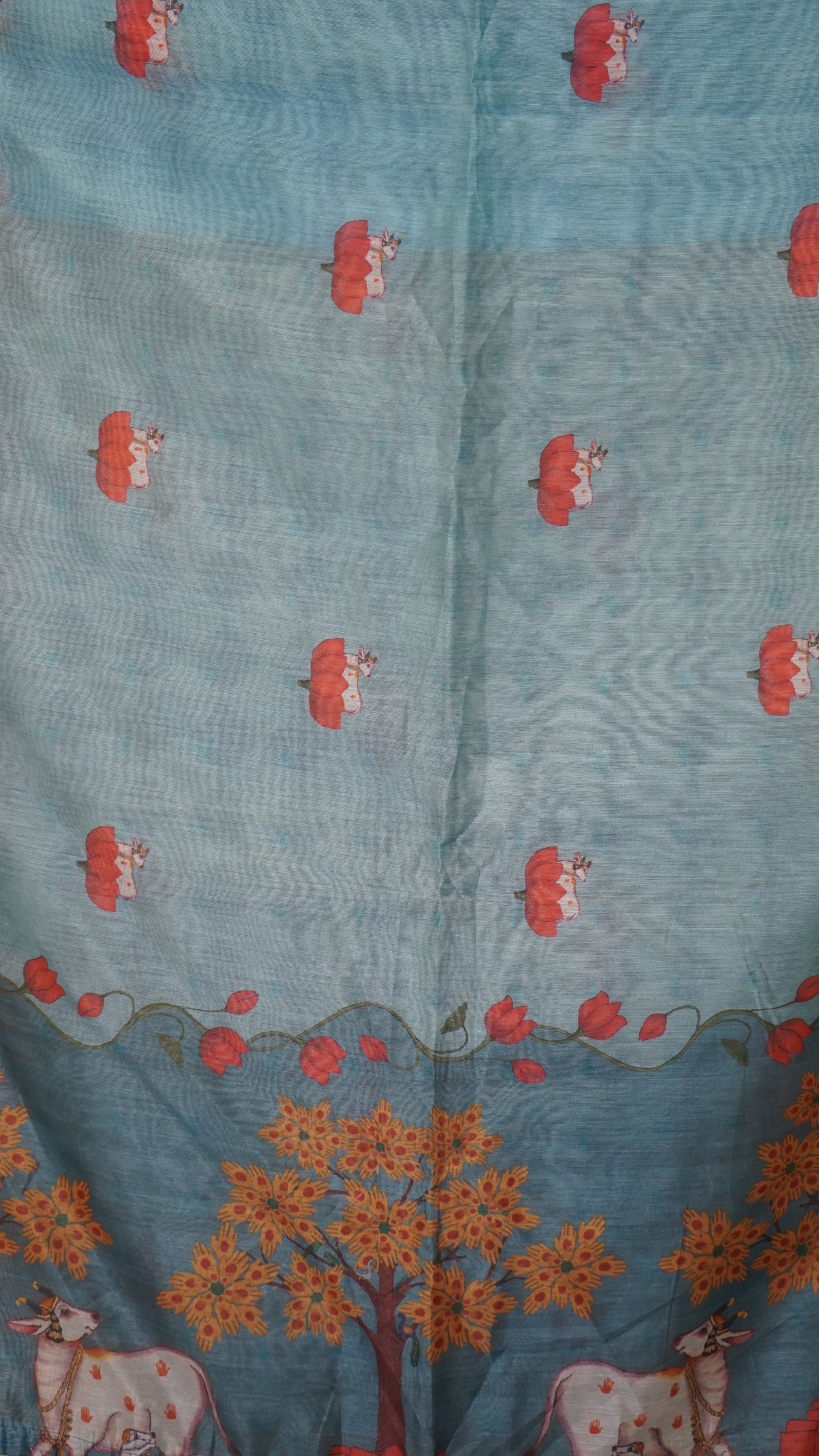 Chanderi Saree Pichwai Print - Teal Blue