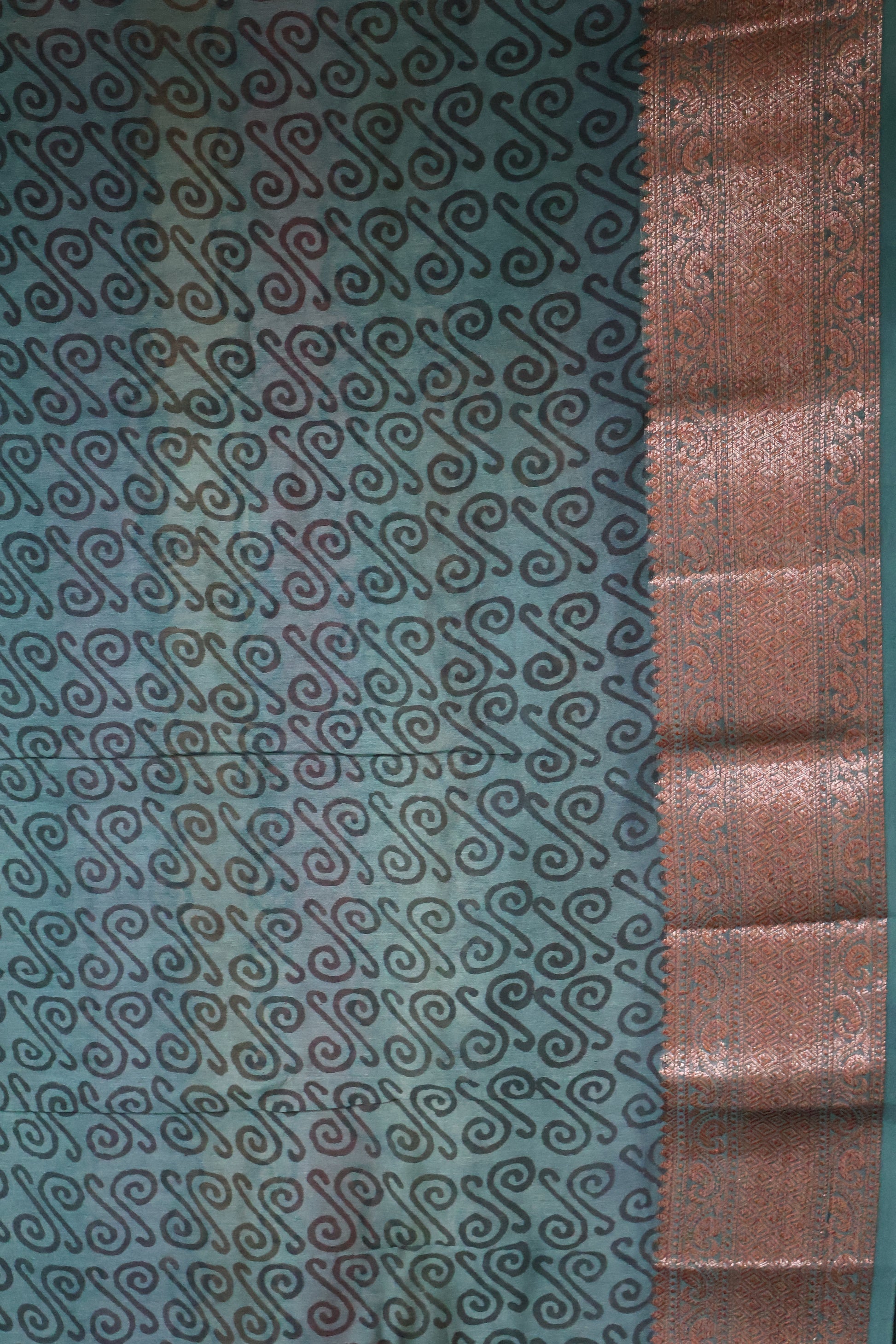Chanderi Silk Cotton Saree-Navy blue-Peacock Green
