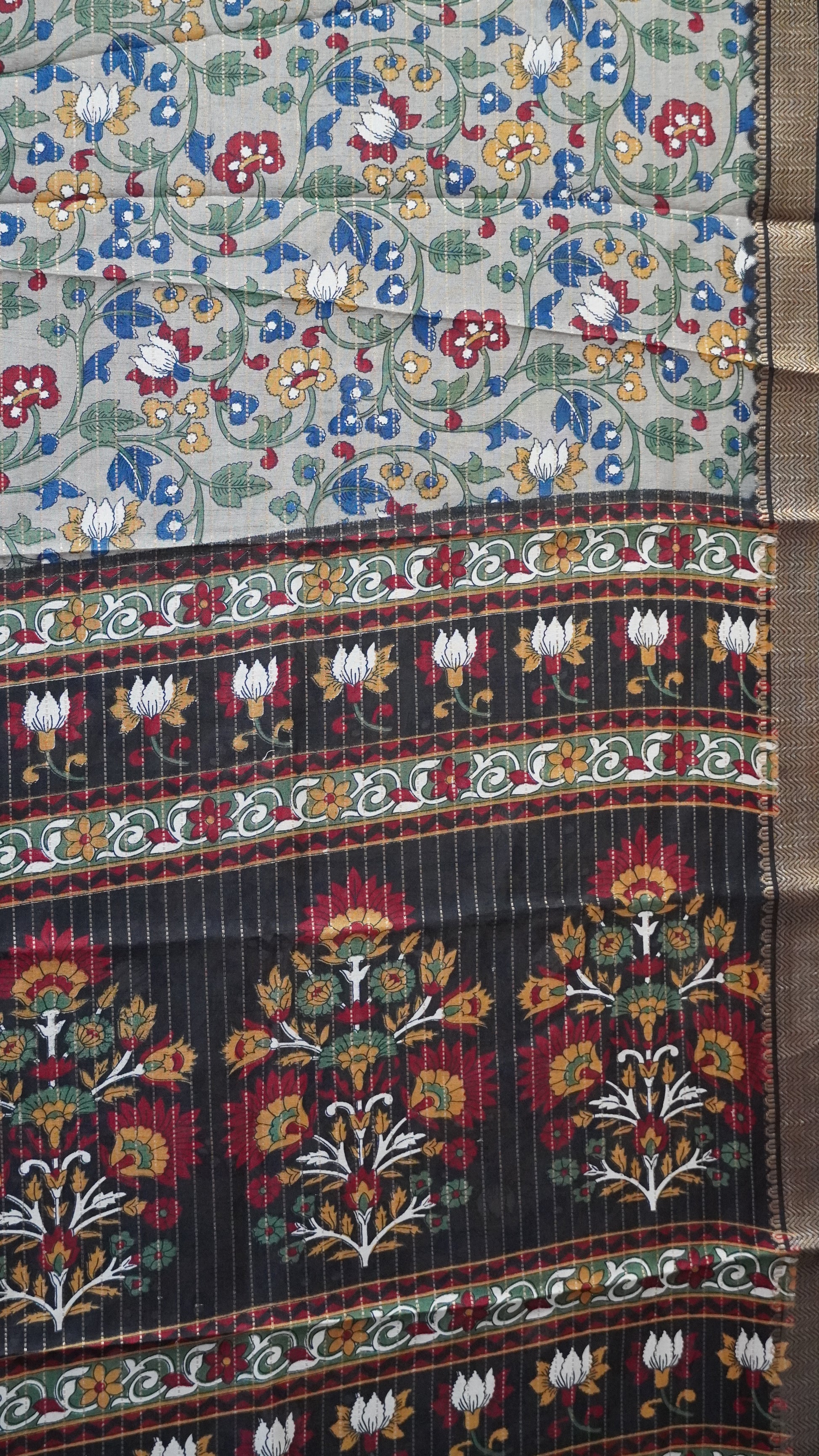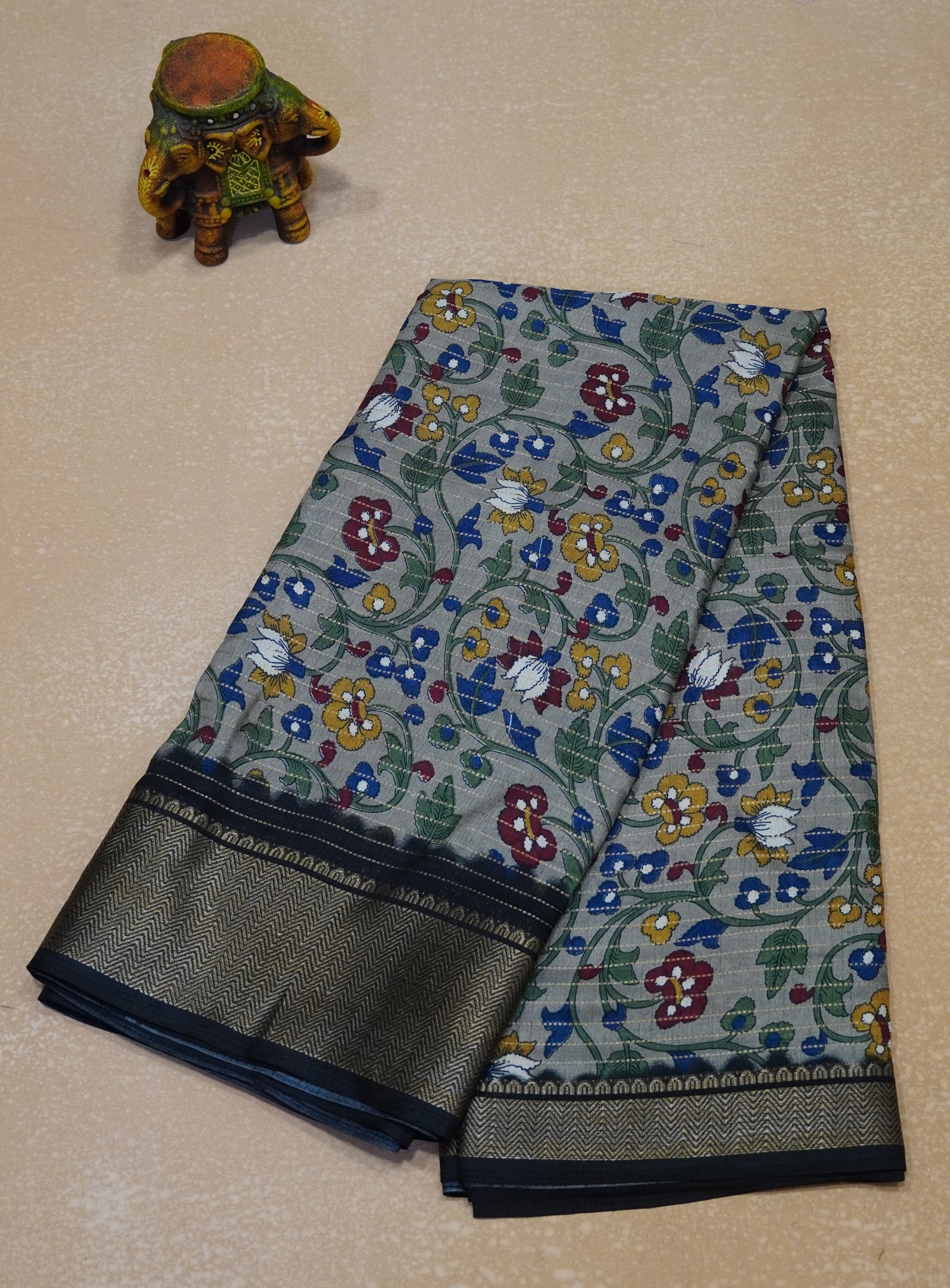 Dola Silk Saree Floral Zari Lines-Grey
