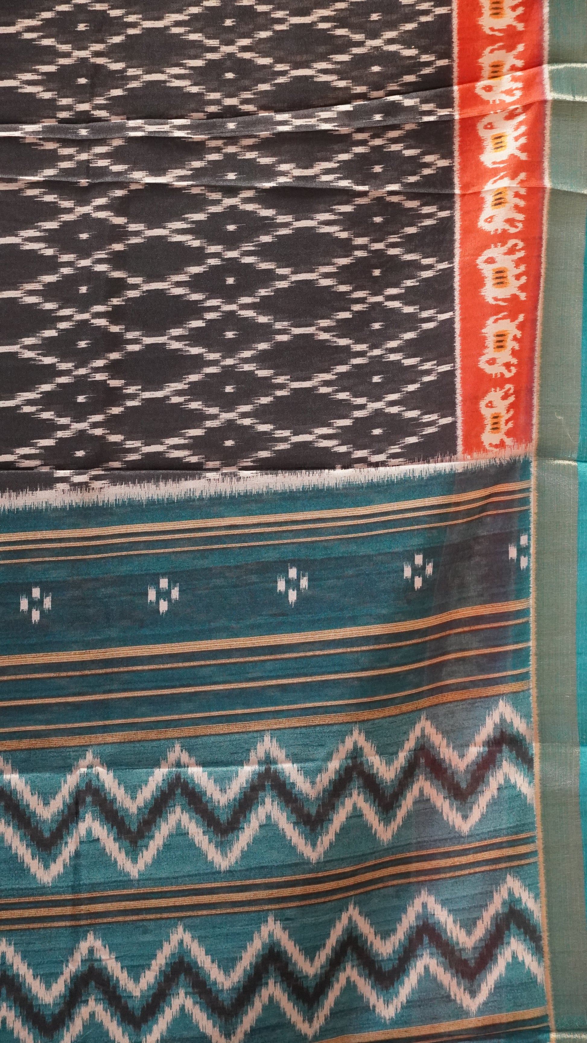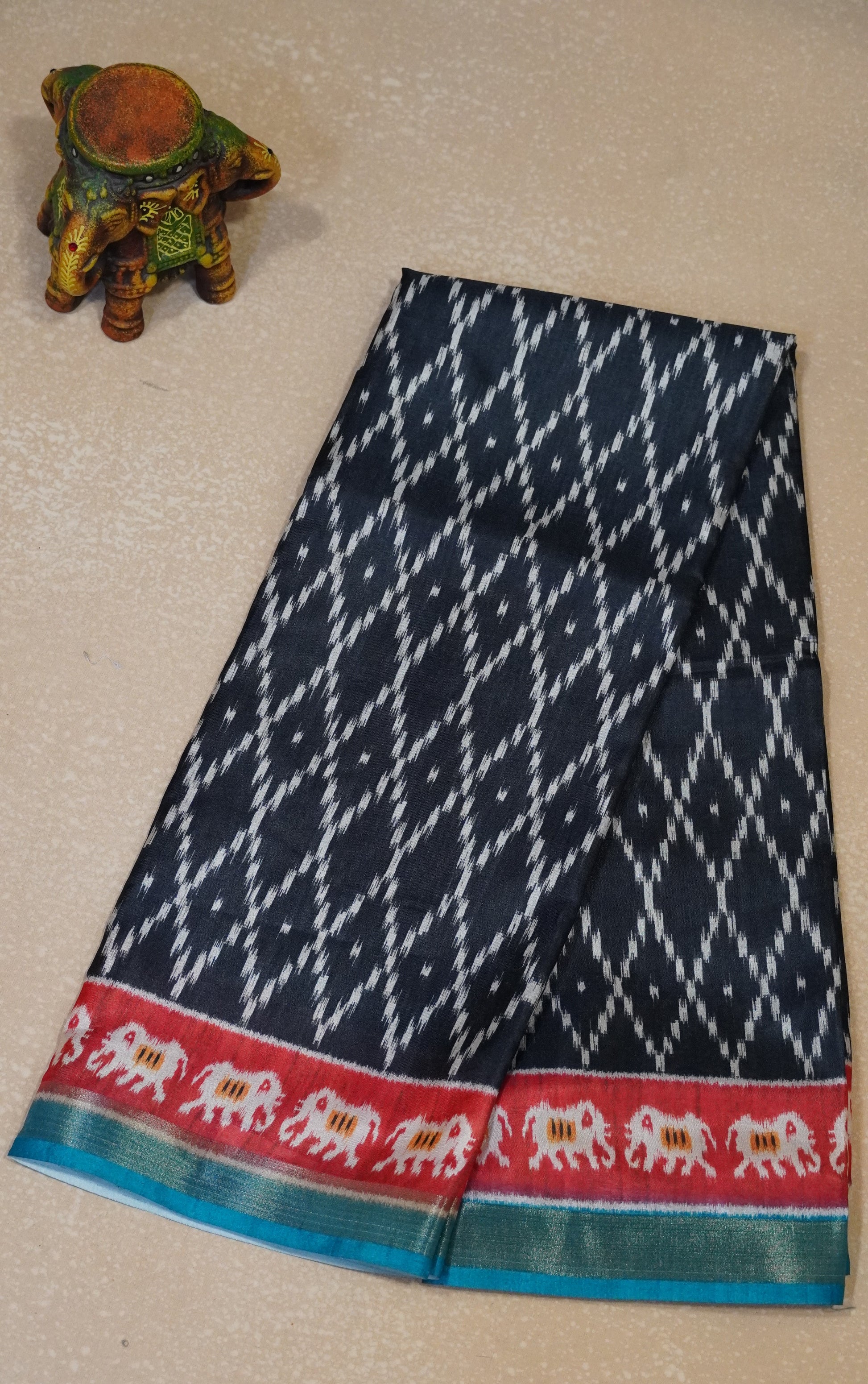 Dola Silk Saree Ikkat Print-Black
