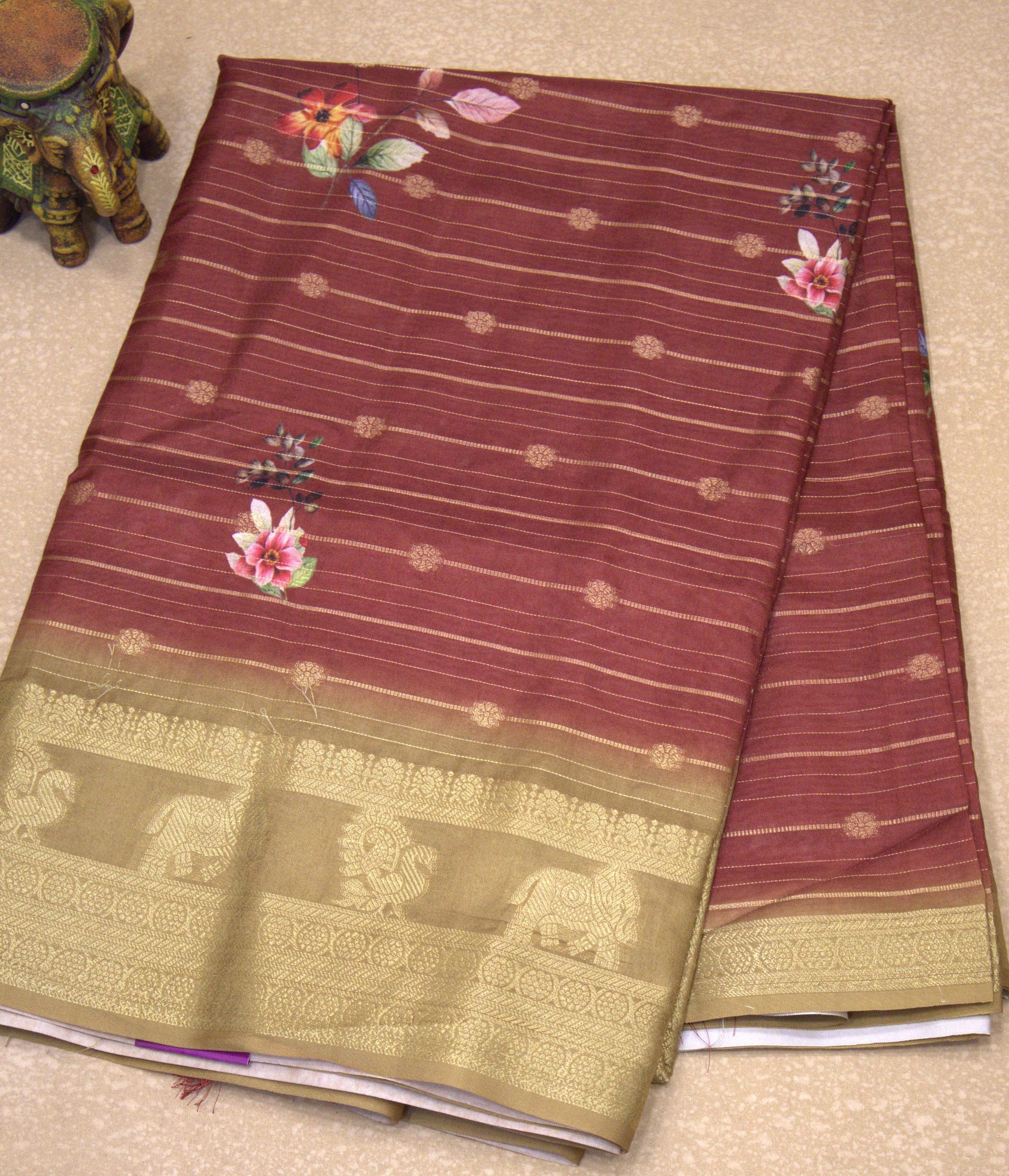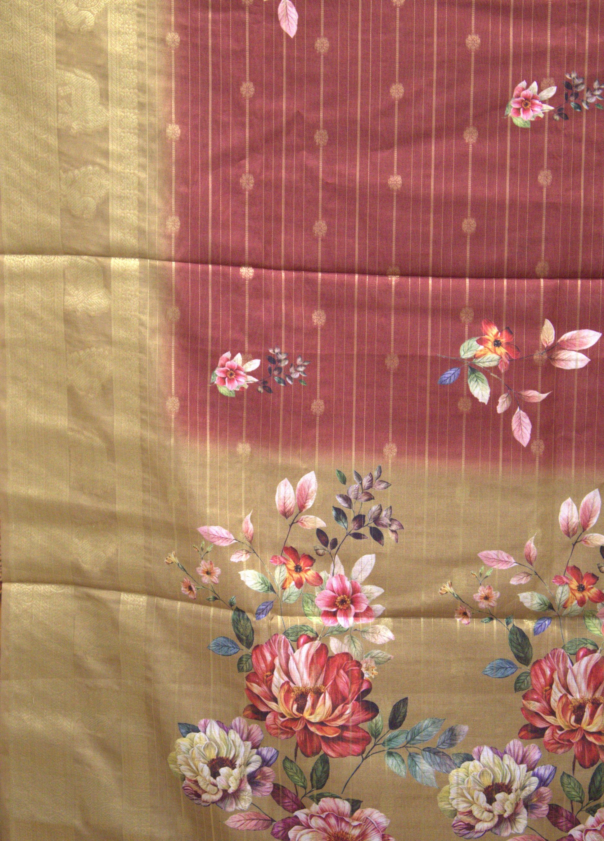 Dola Silk Saree - Maroon Gold Floral Flower Line