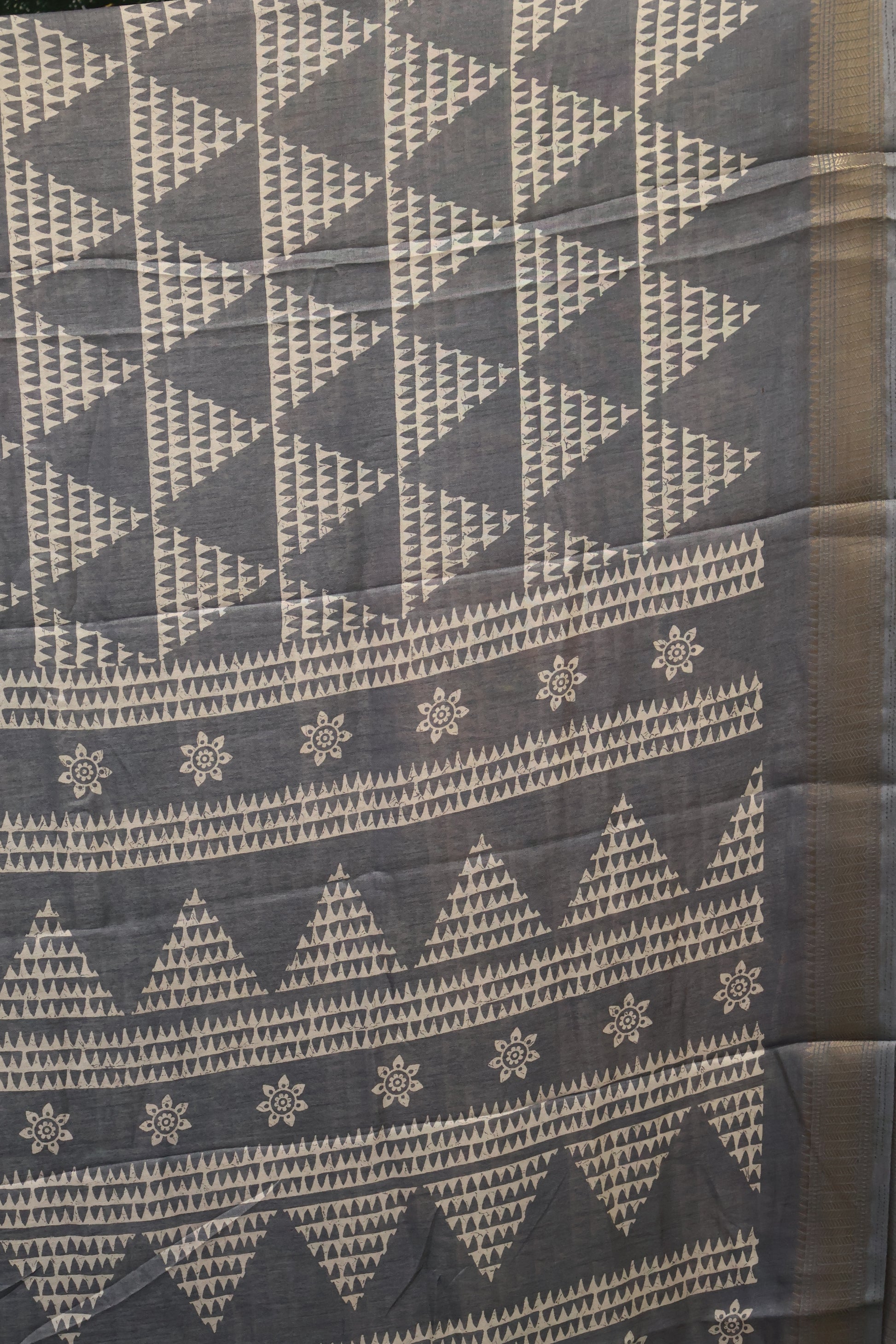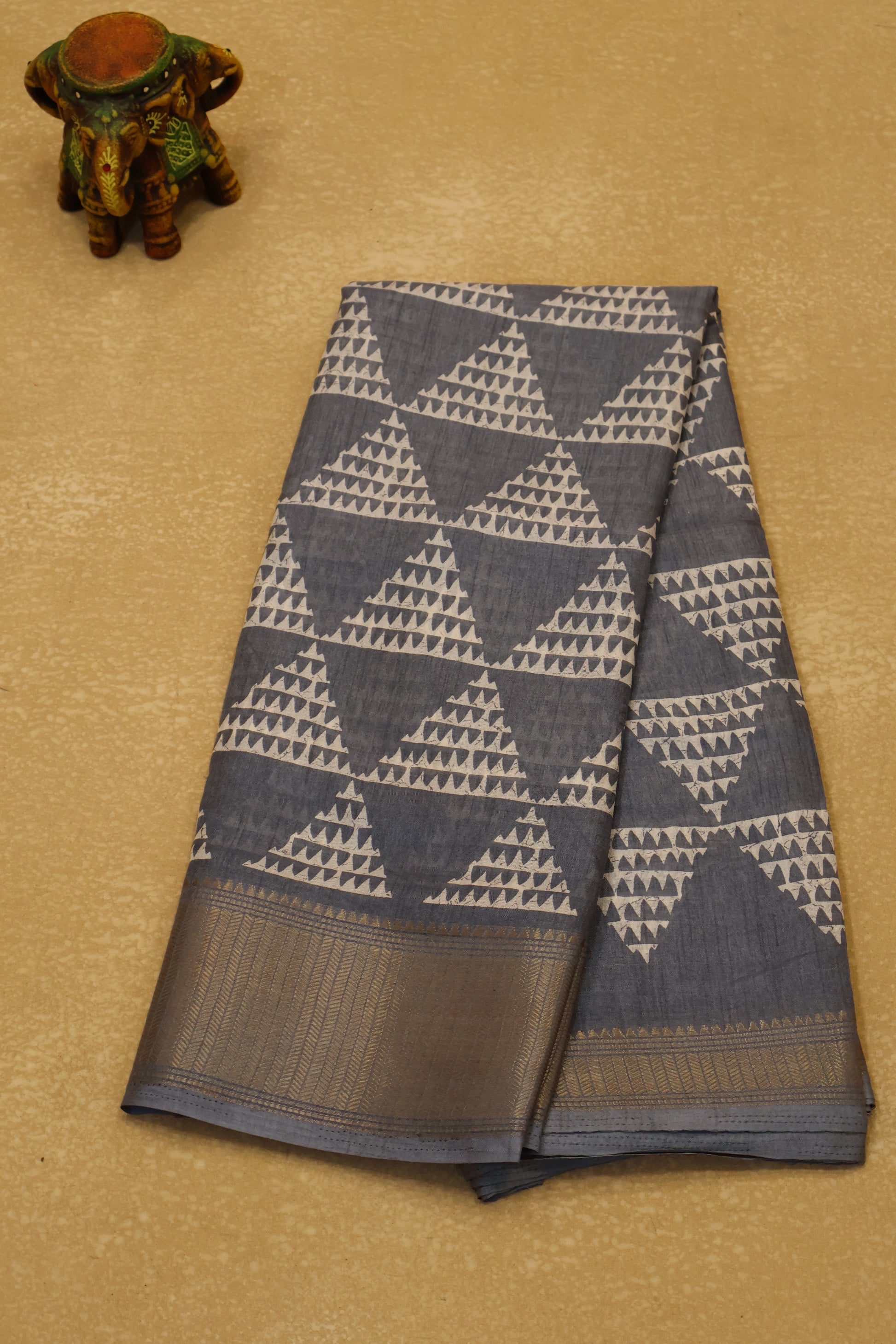 Dola Silk Saree Pyramid Pattern-Grey