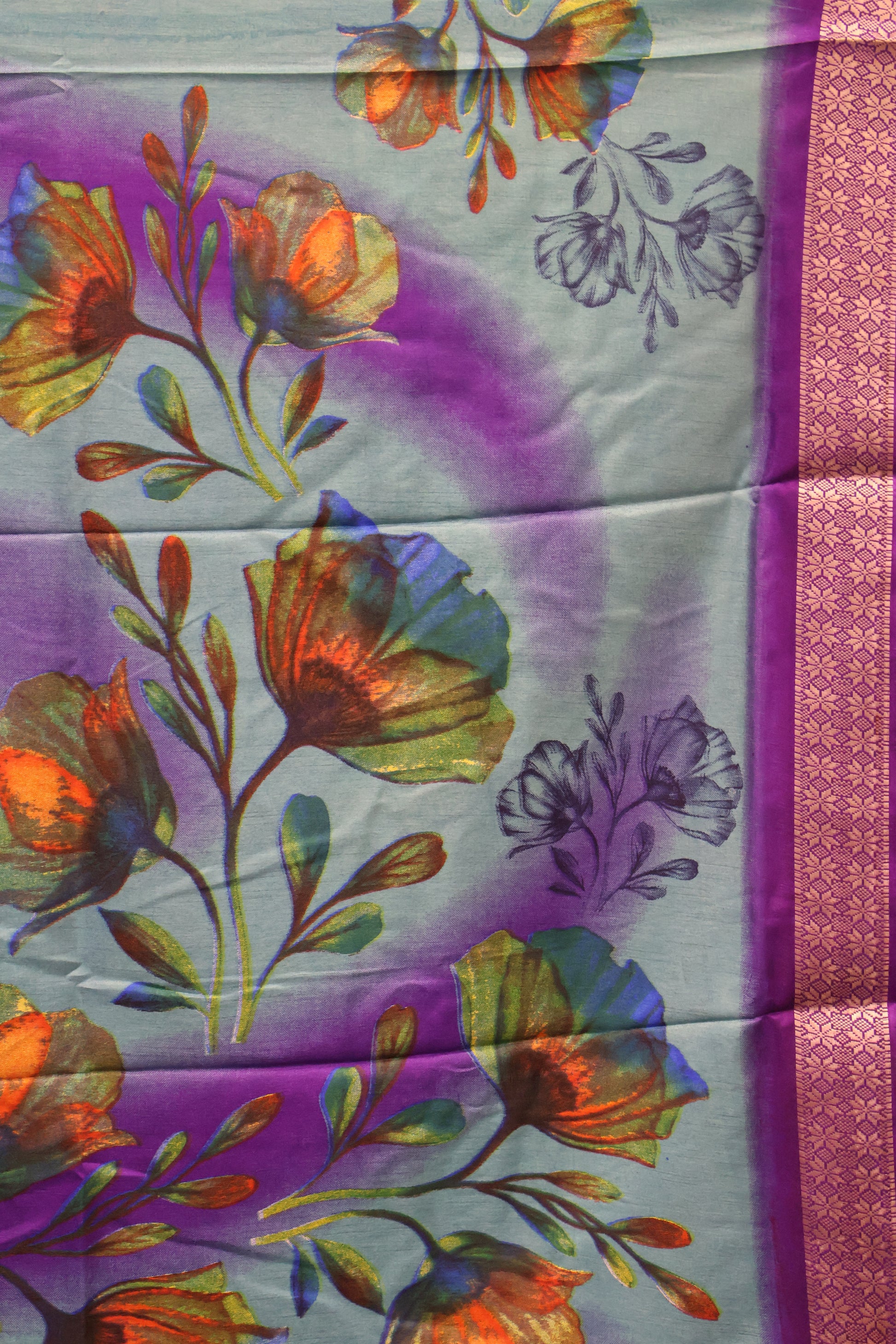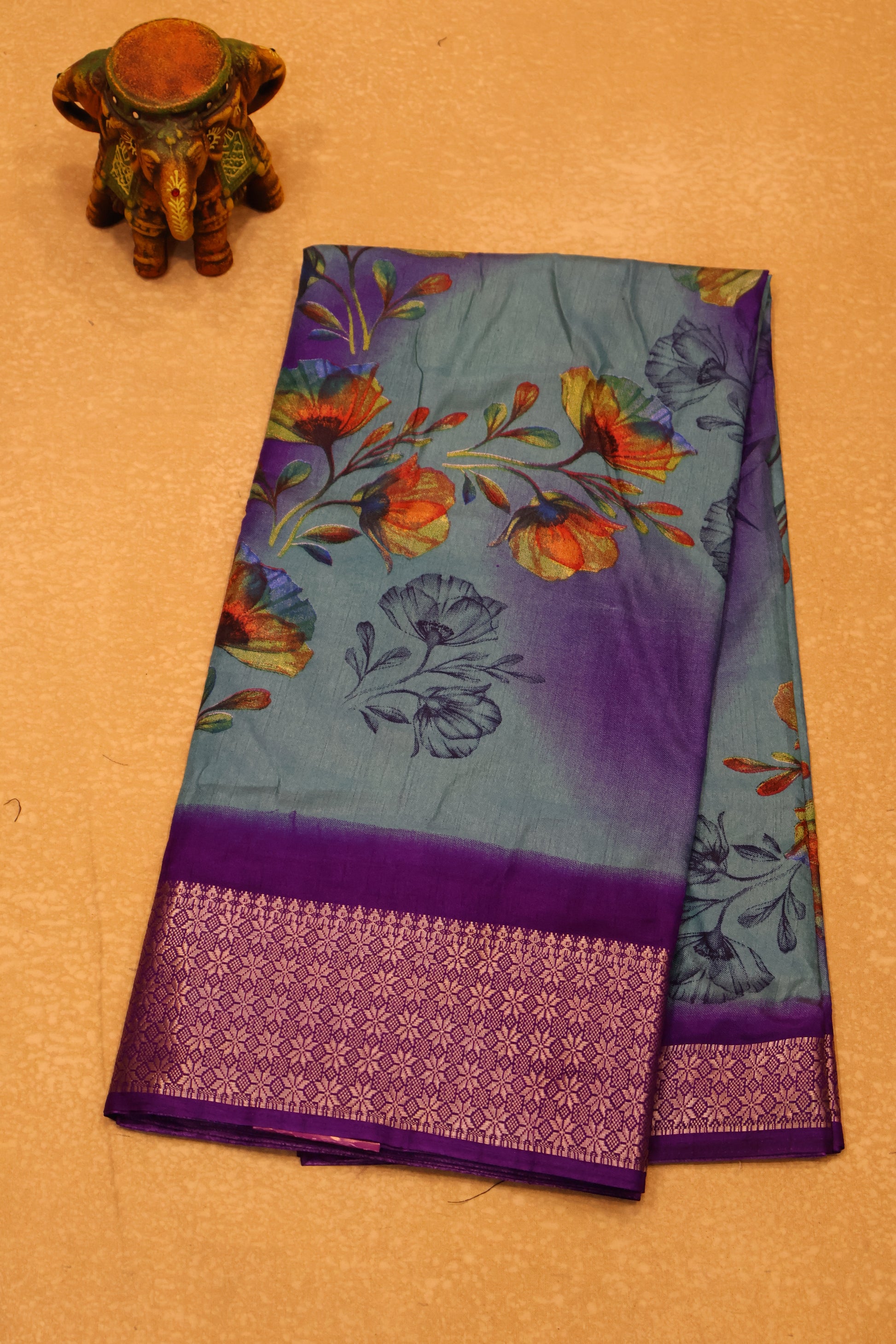 Dola Silk Saree Rainbow Bloom-Sky Blue