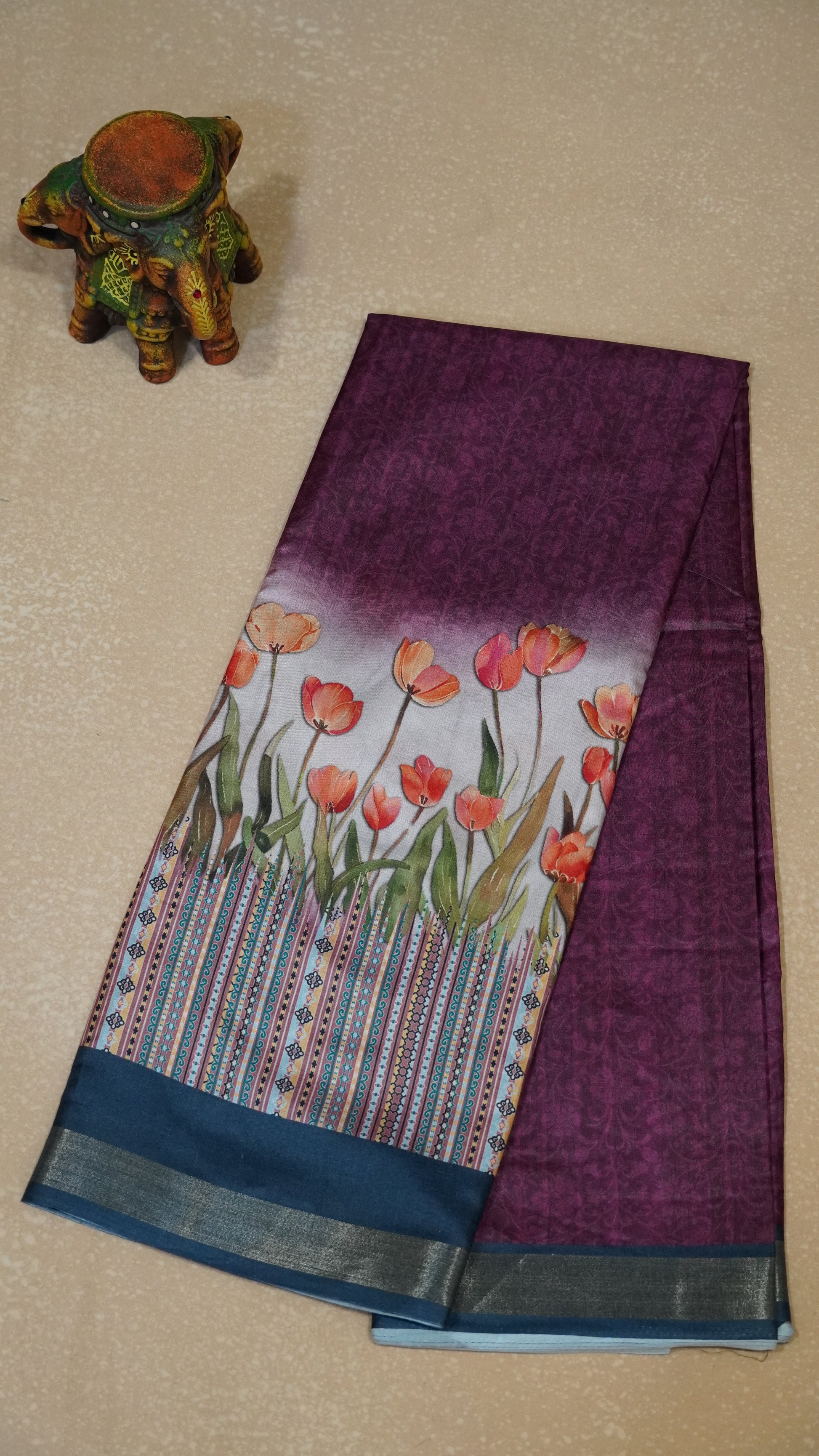 Dola Silk Saree Tulip Print-Purple