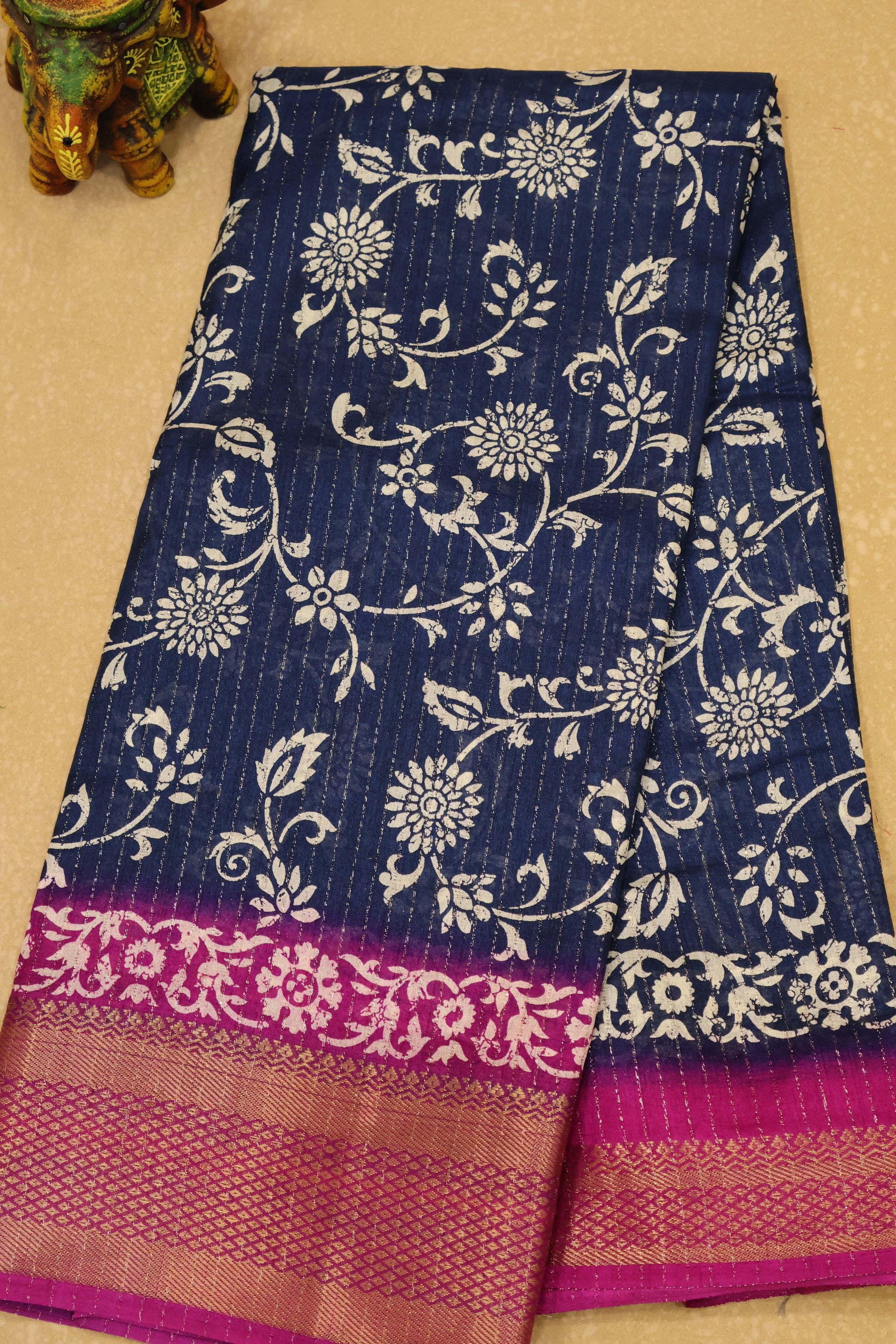 Dola Silk Saree Zari Lines-Peacock Blue