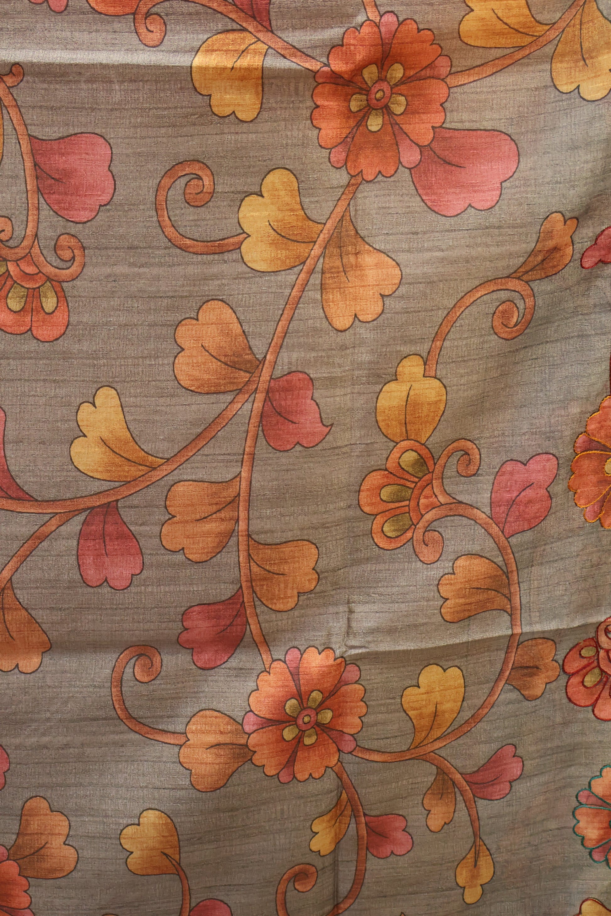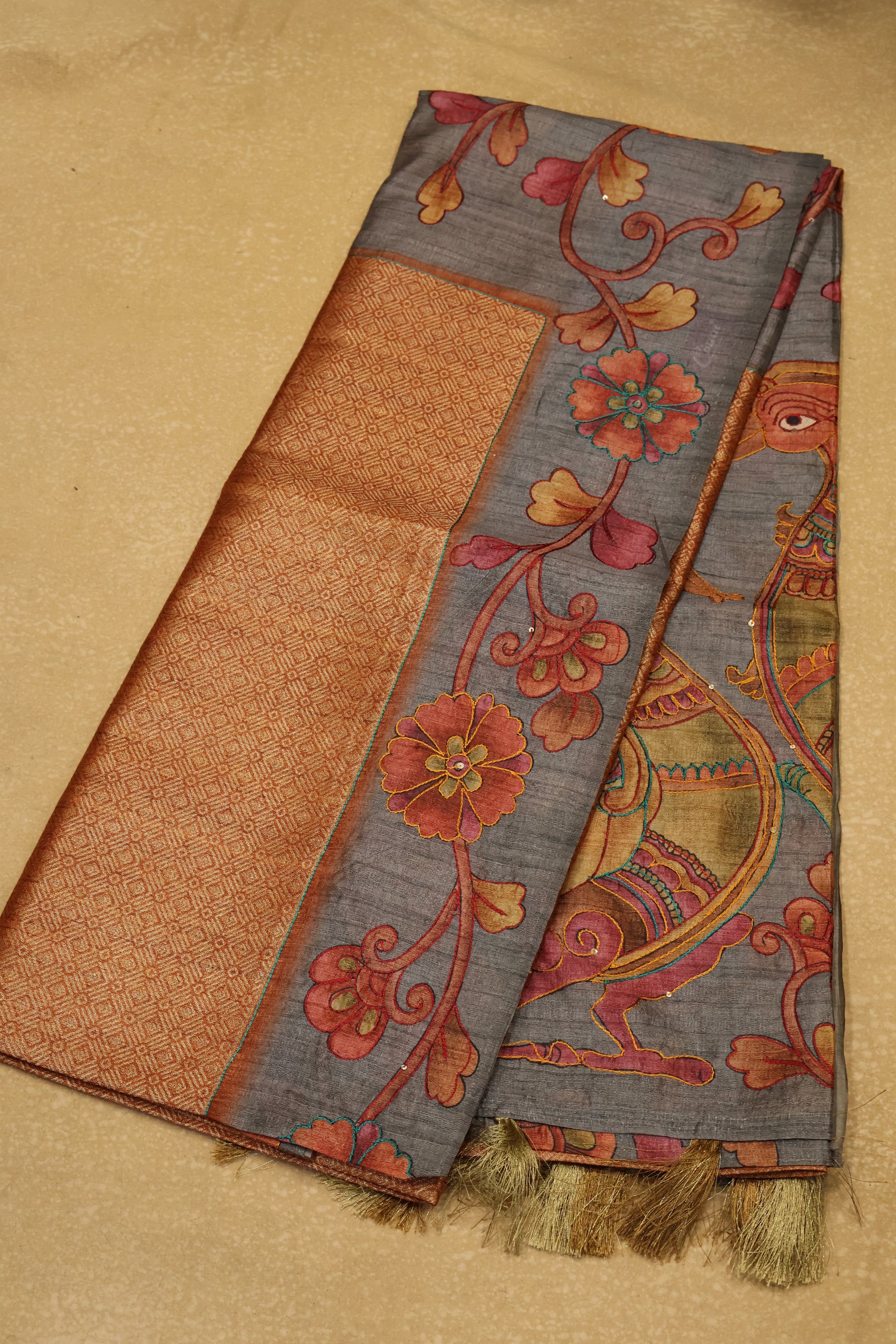 Fushion Kanjivaram Silk Saree-Orange Dimond Flower Work