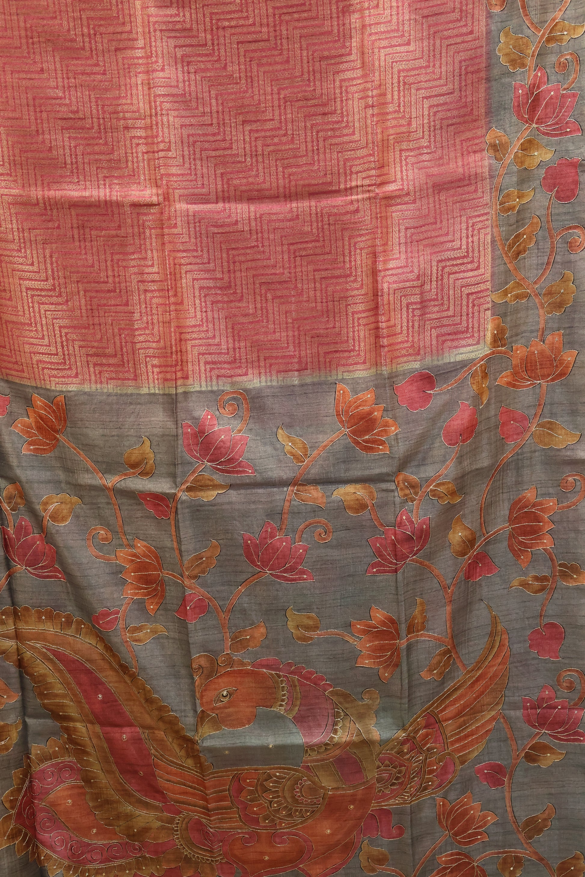 Fushion Kanjivaram Silk Saree-Pink Zig Zag Work