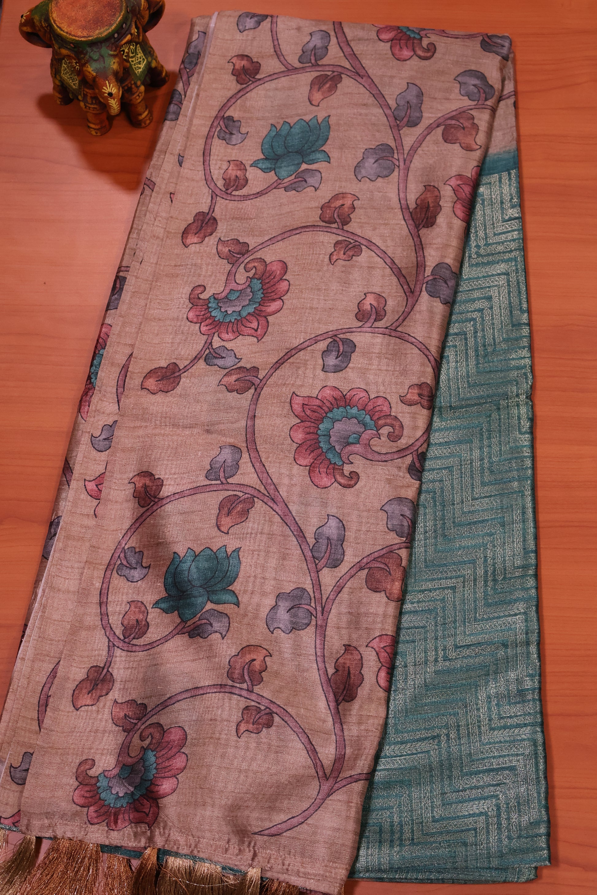 Fushion Kanjivaram Silk Saree-Green Zig Zag Zari