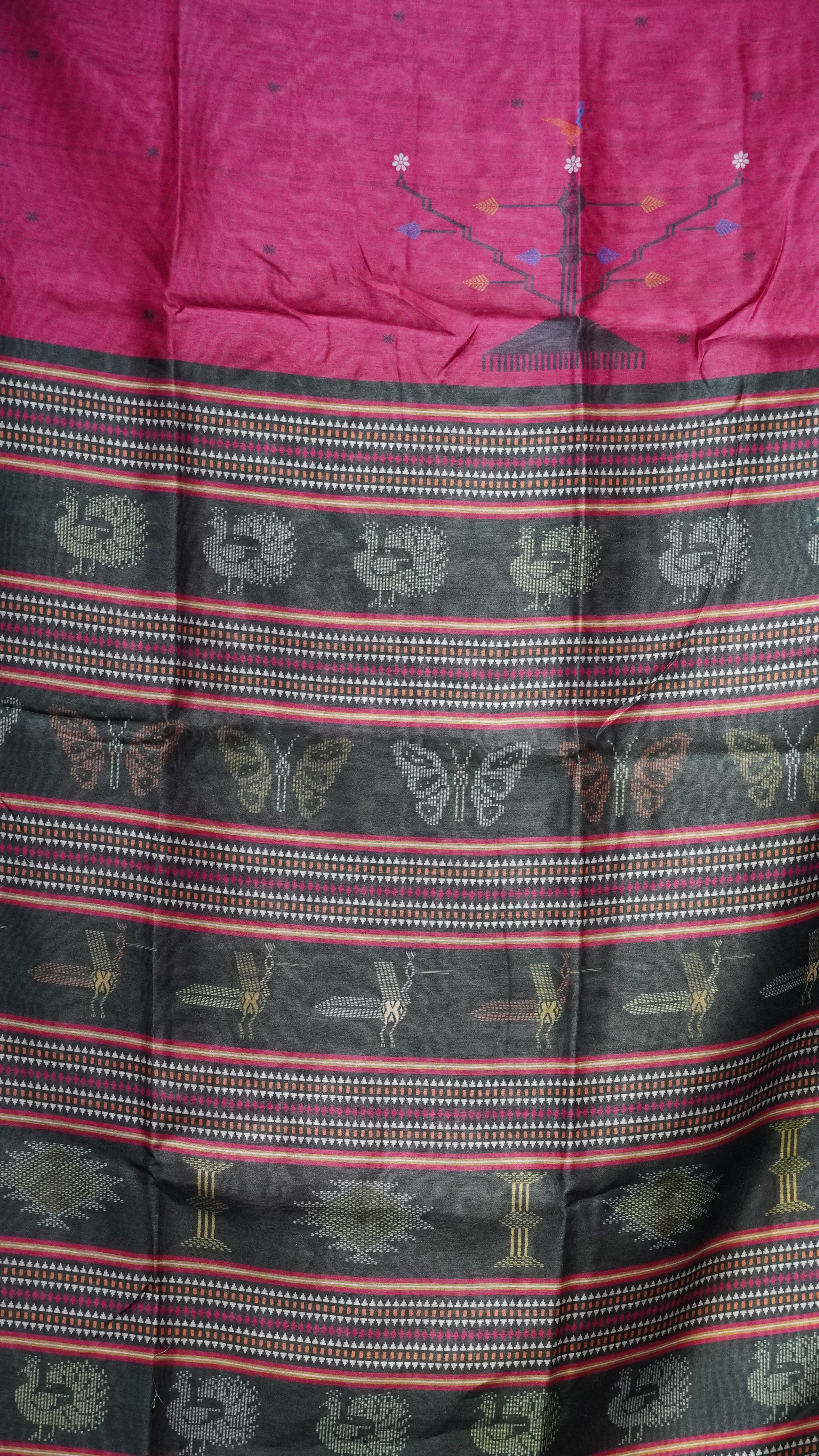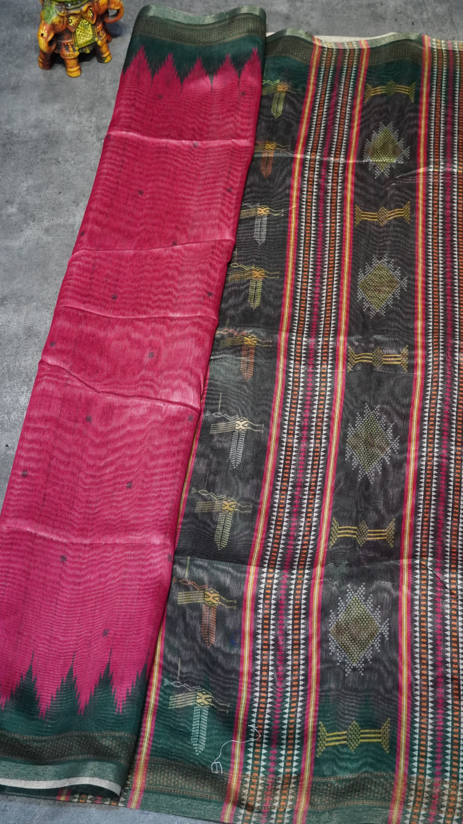 Gicha Tussar Saree Pink - Green