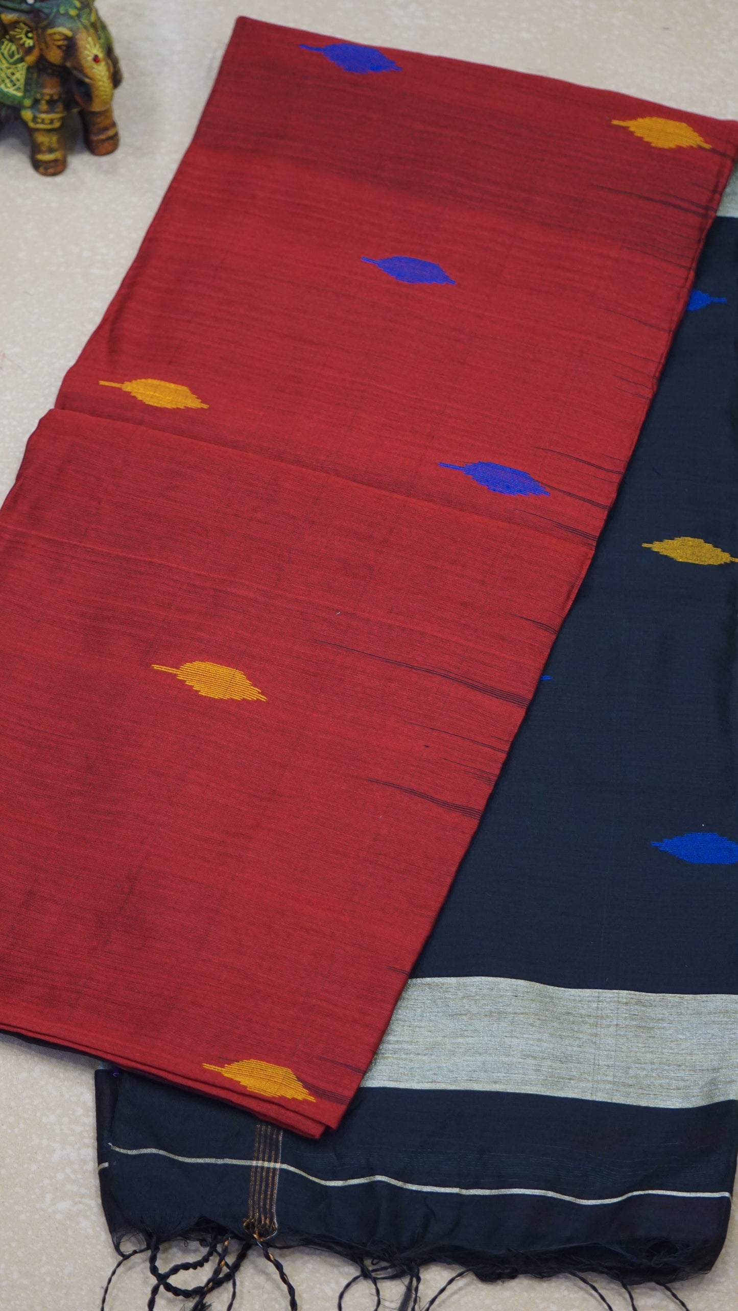 Handloom Cotton Saree - Red & Black