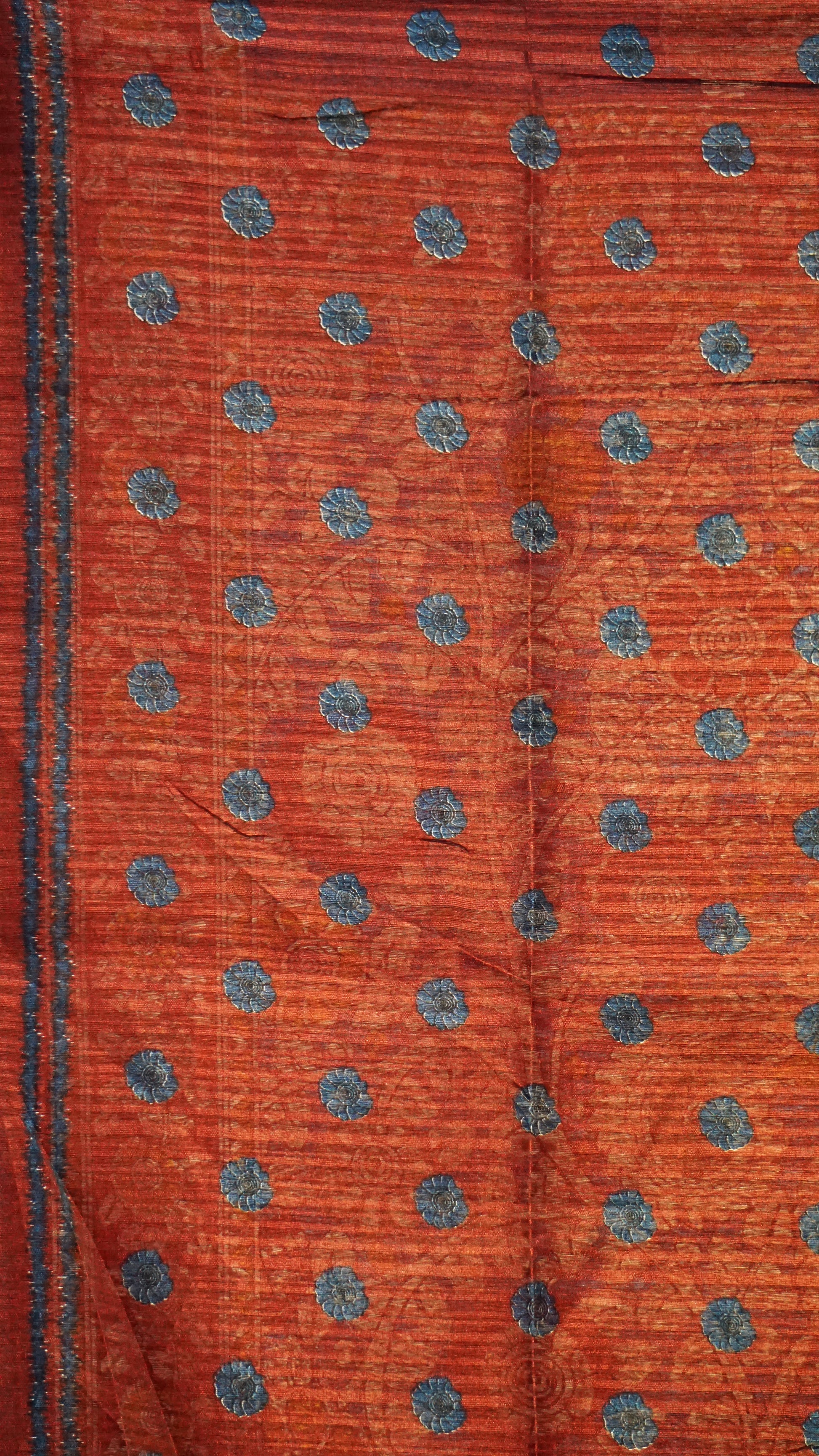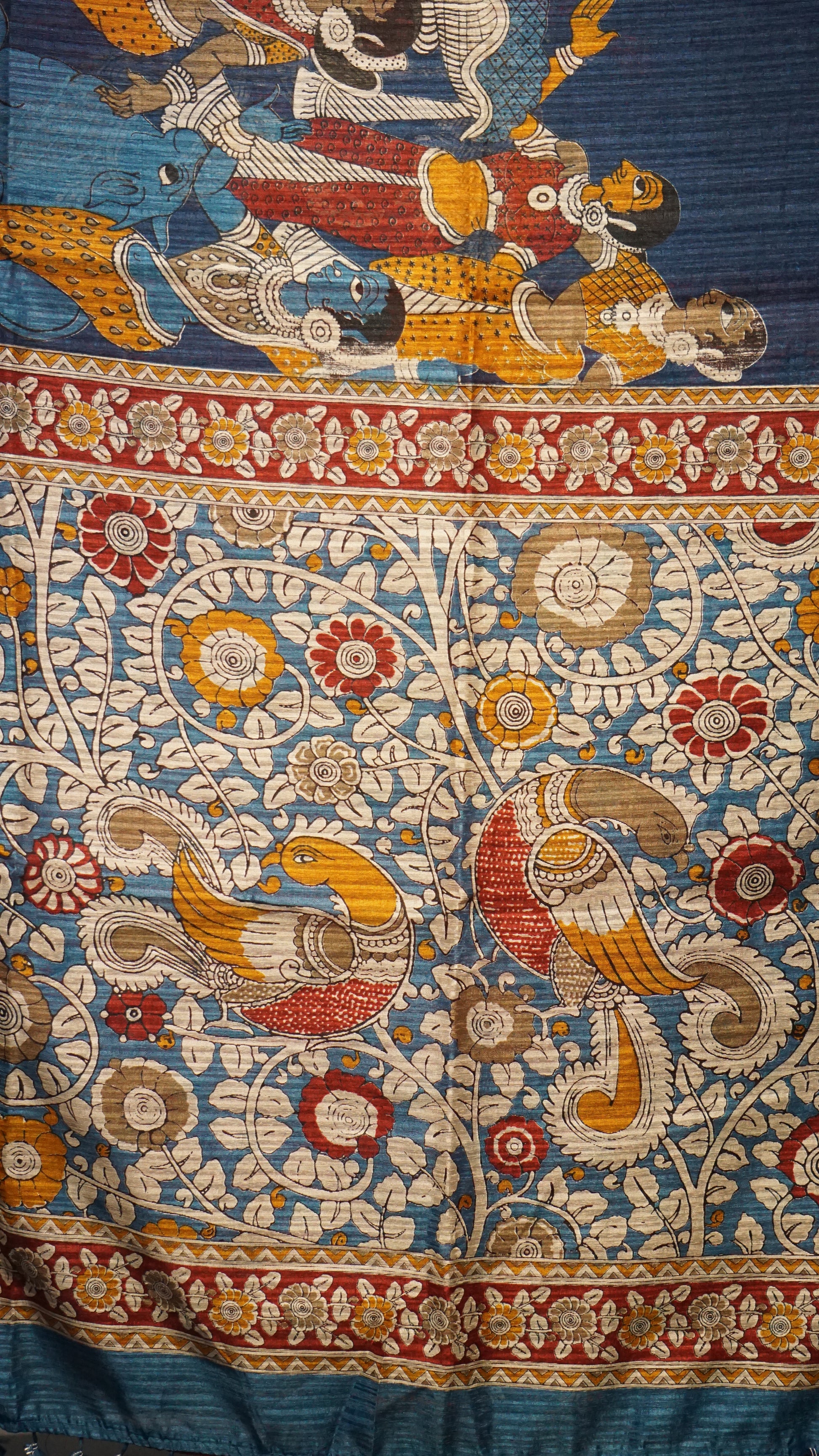 Jute Cotton Saree Kalamkari Print Blue