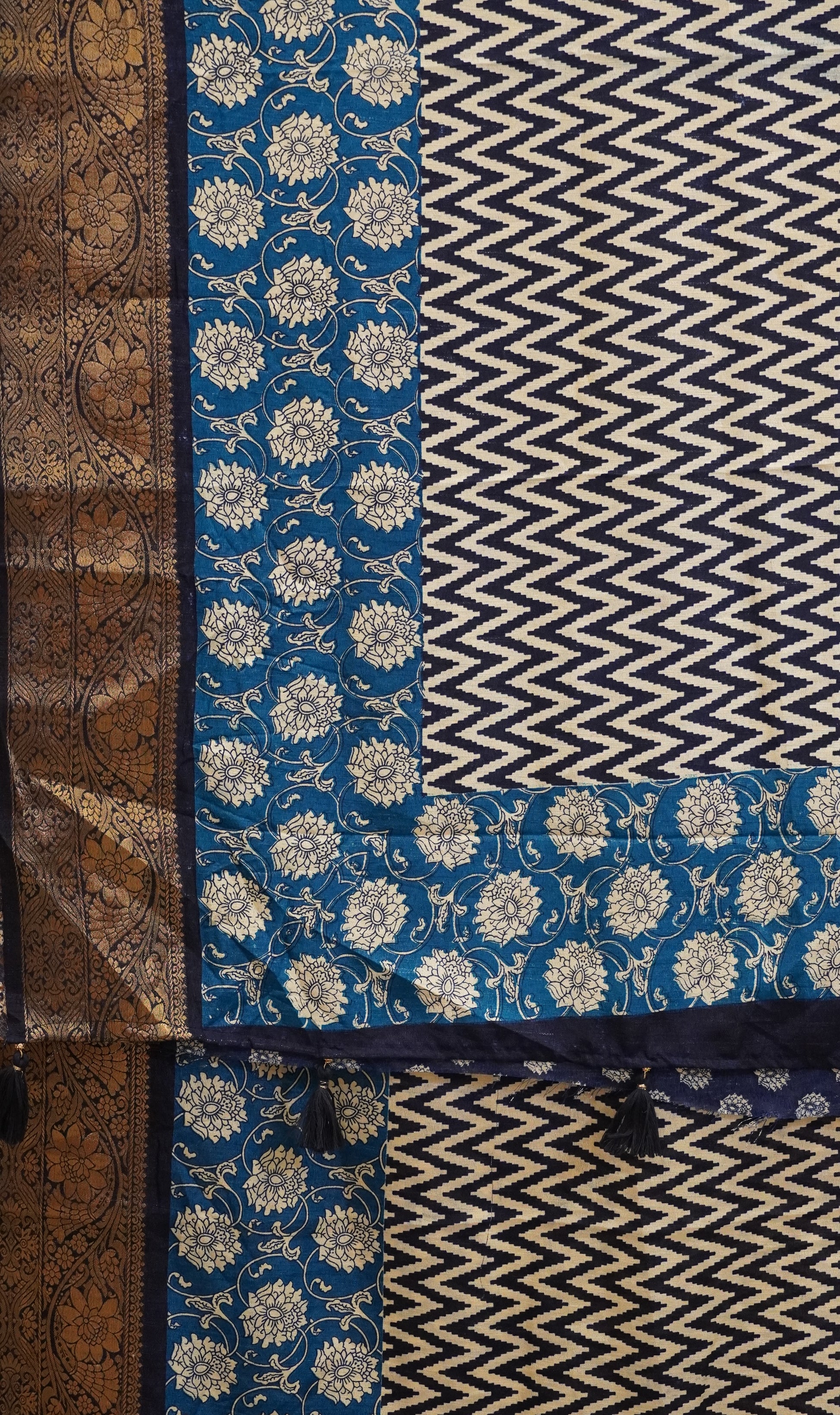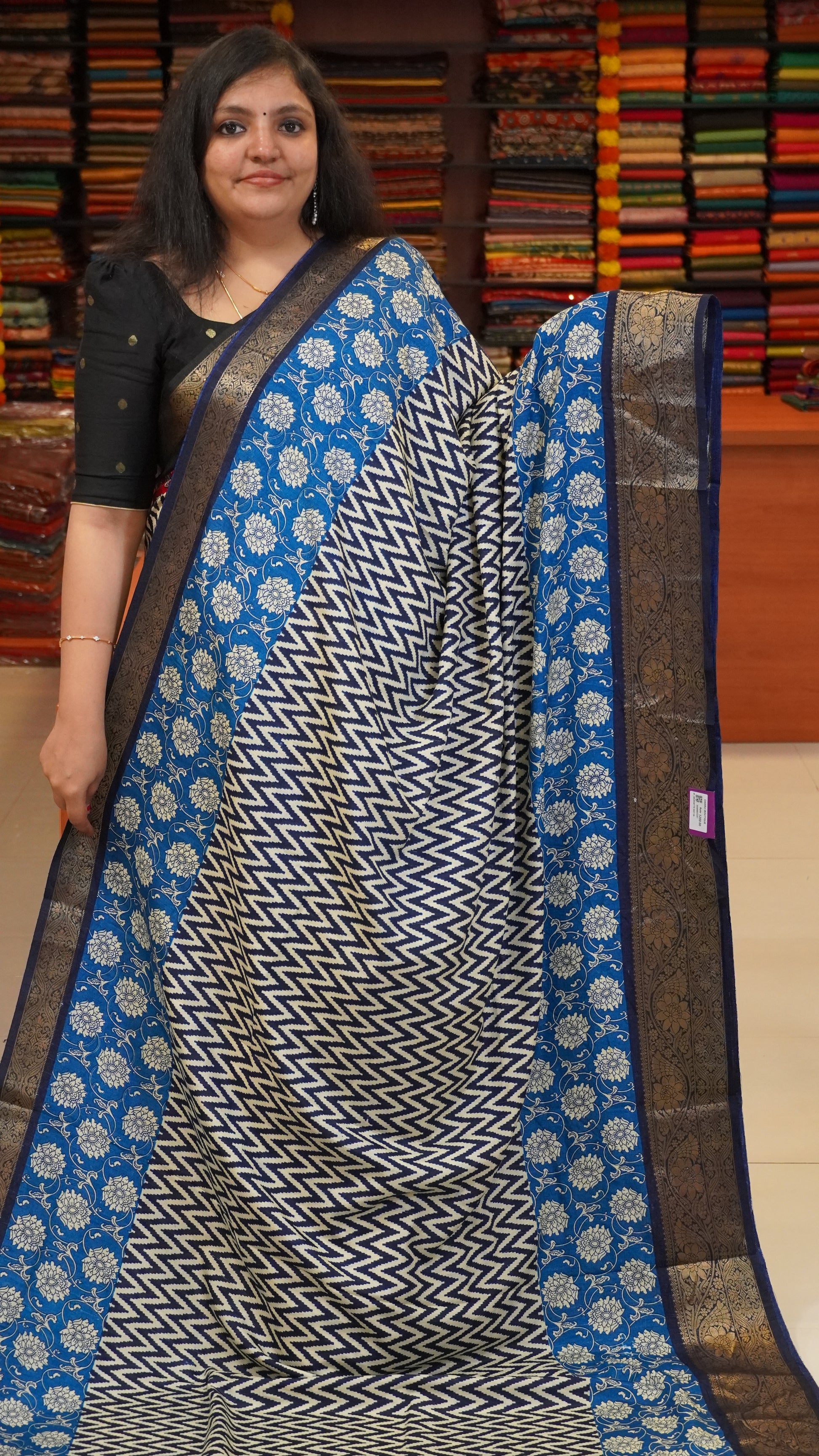 Jute Shiffon Saree Navy Blue
