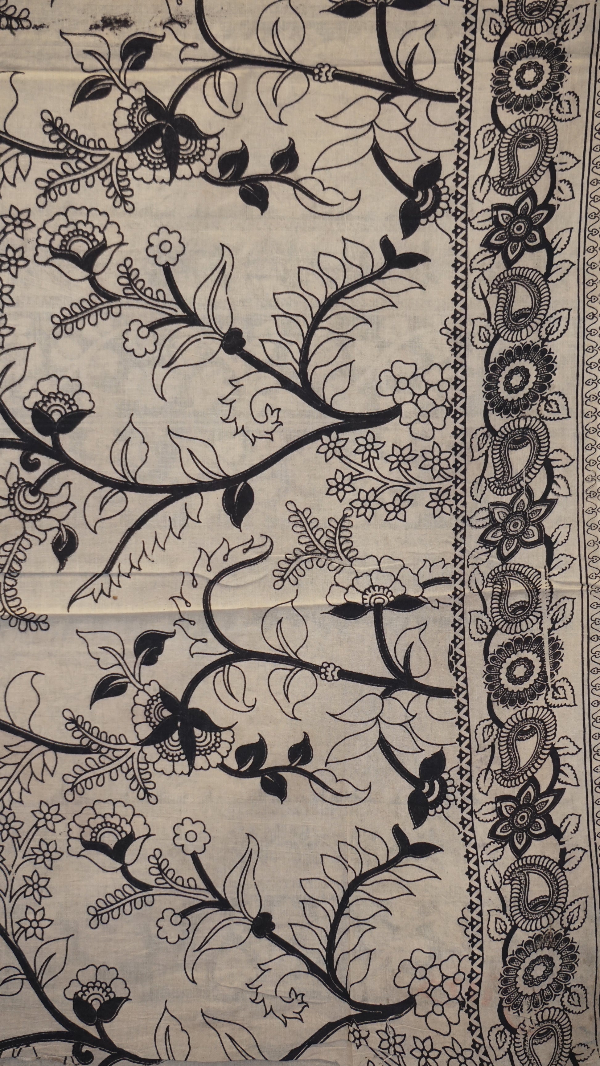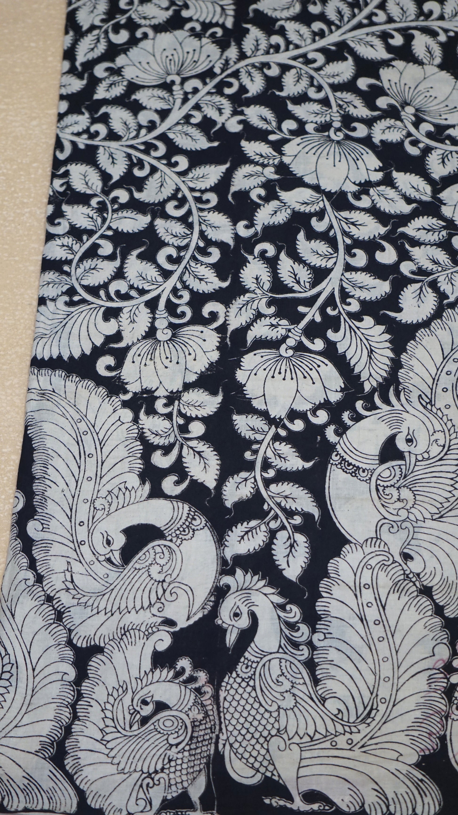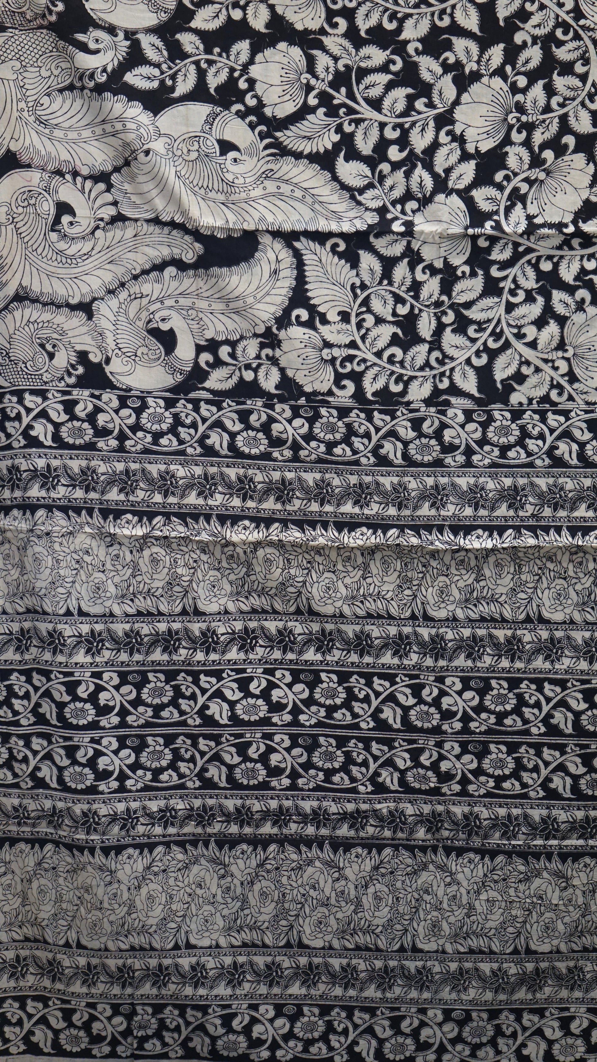 Kalamkari Saree Cotton - Black With Peacock Design