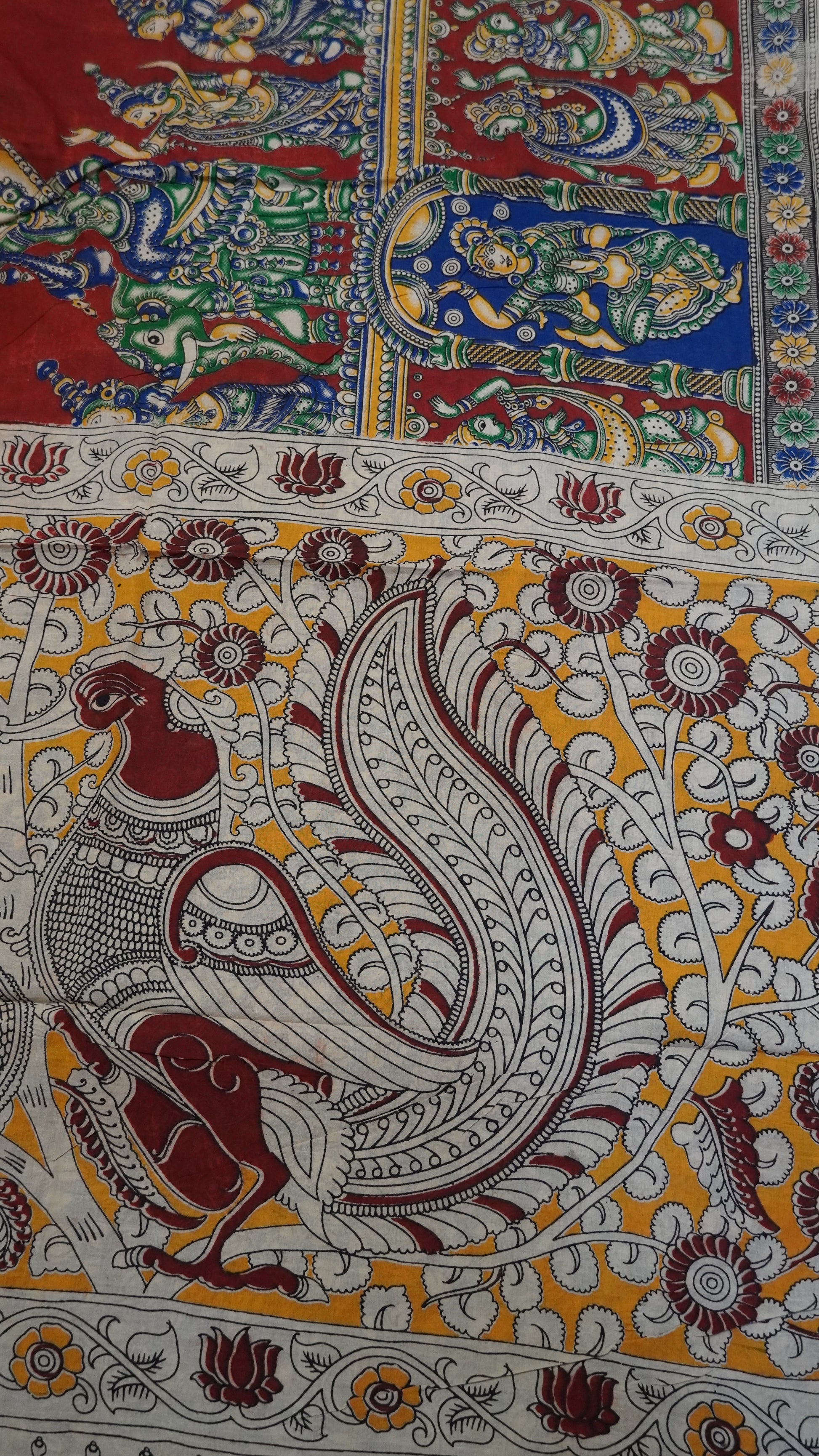 Kalamkari Saree-Maroon-Blue