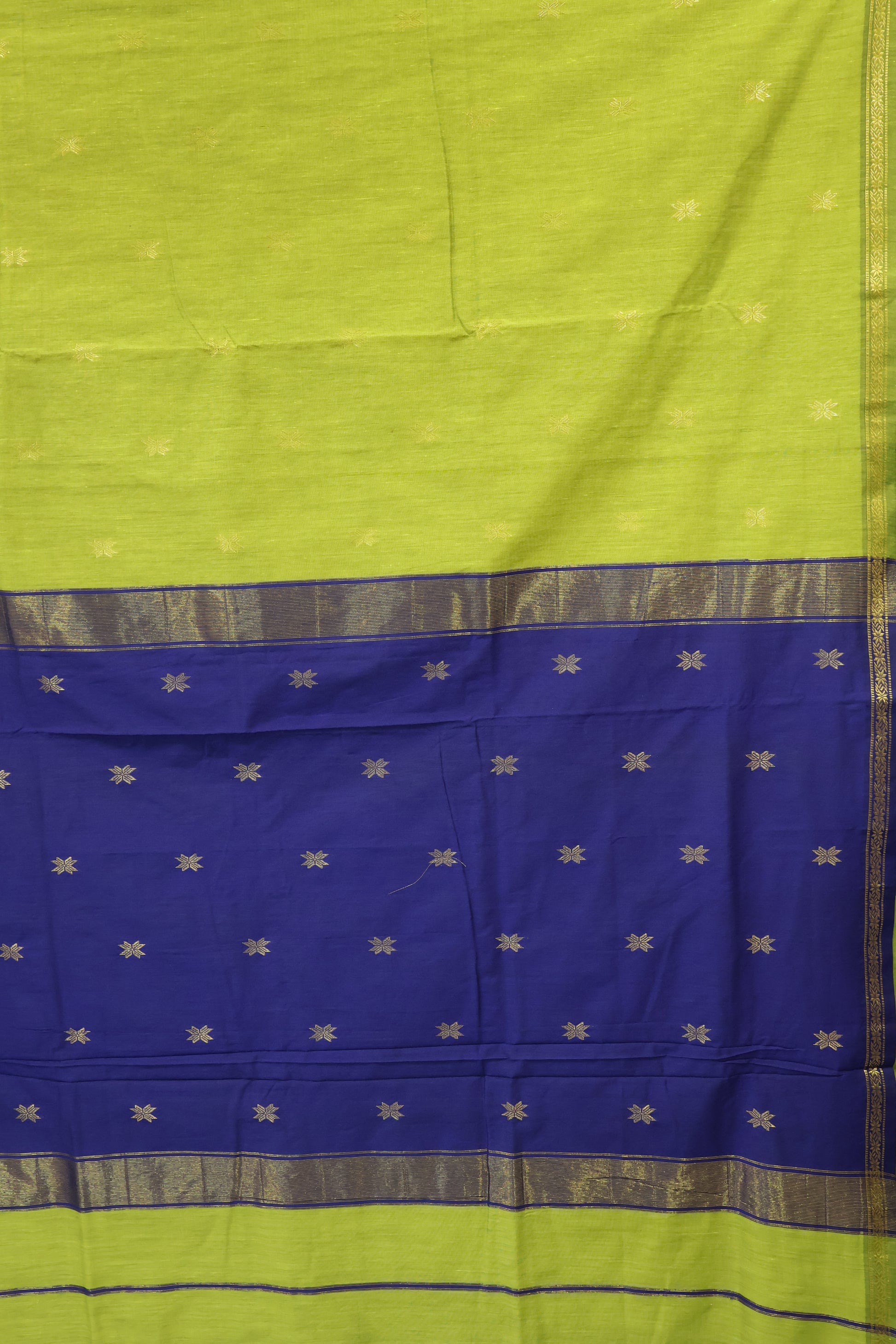 Maheswari Cotton Saree - Star Green Blue