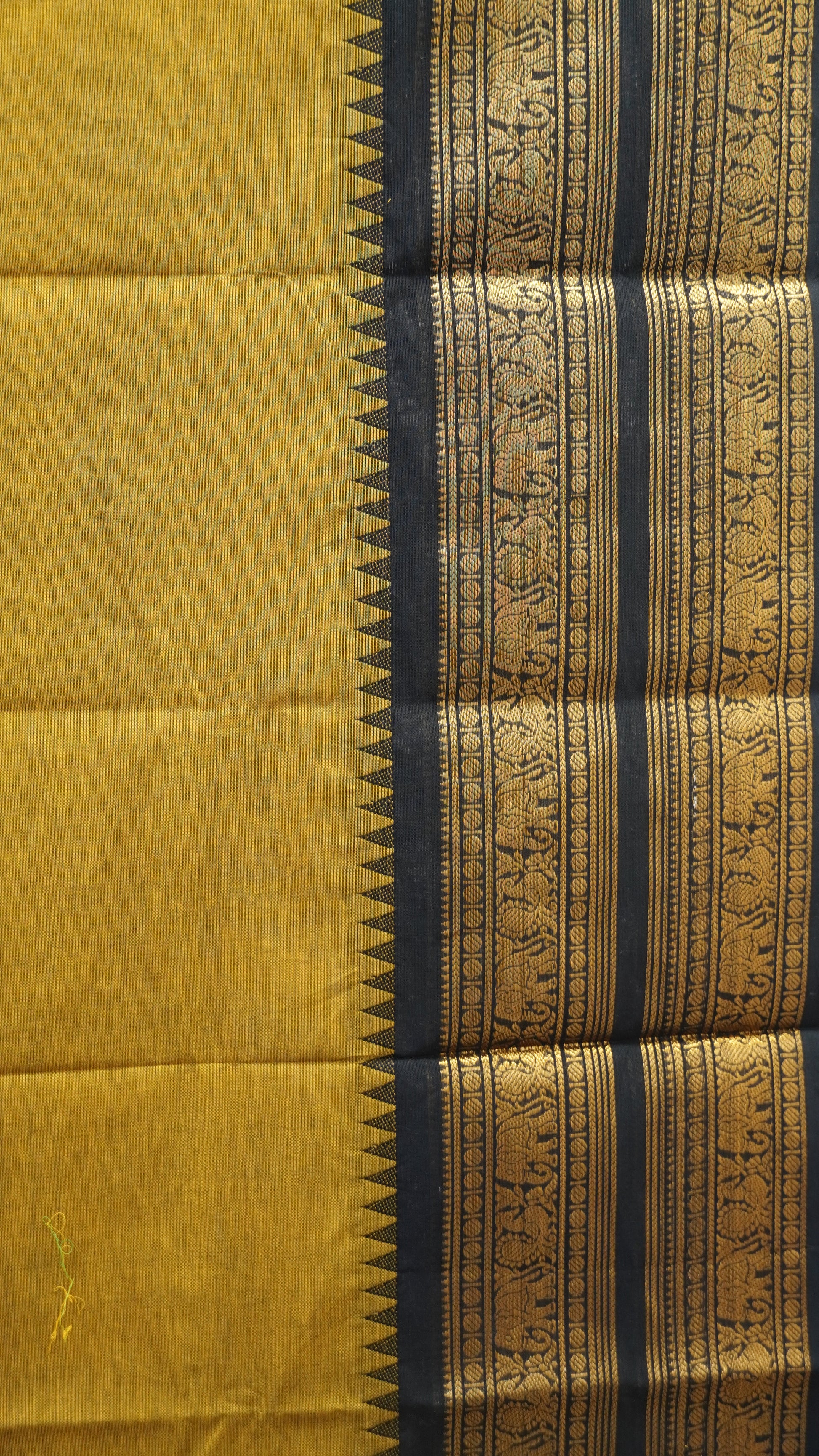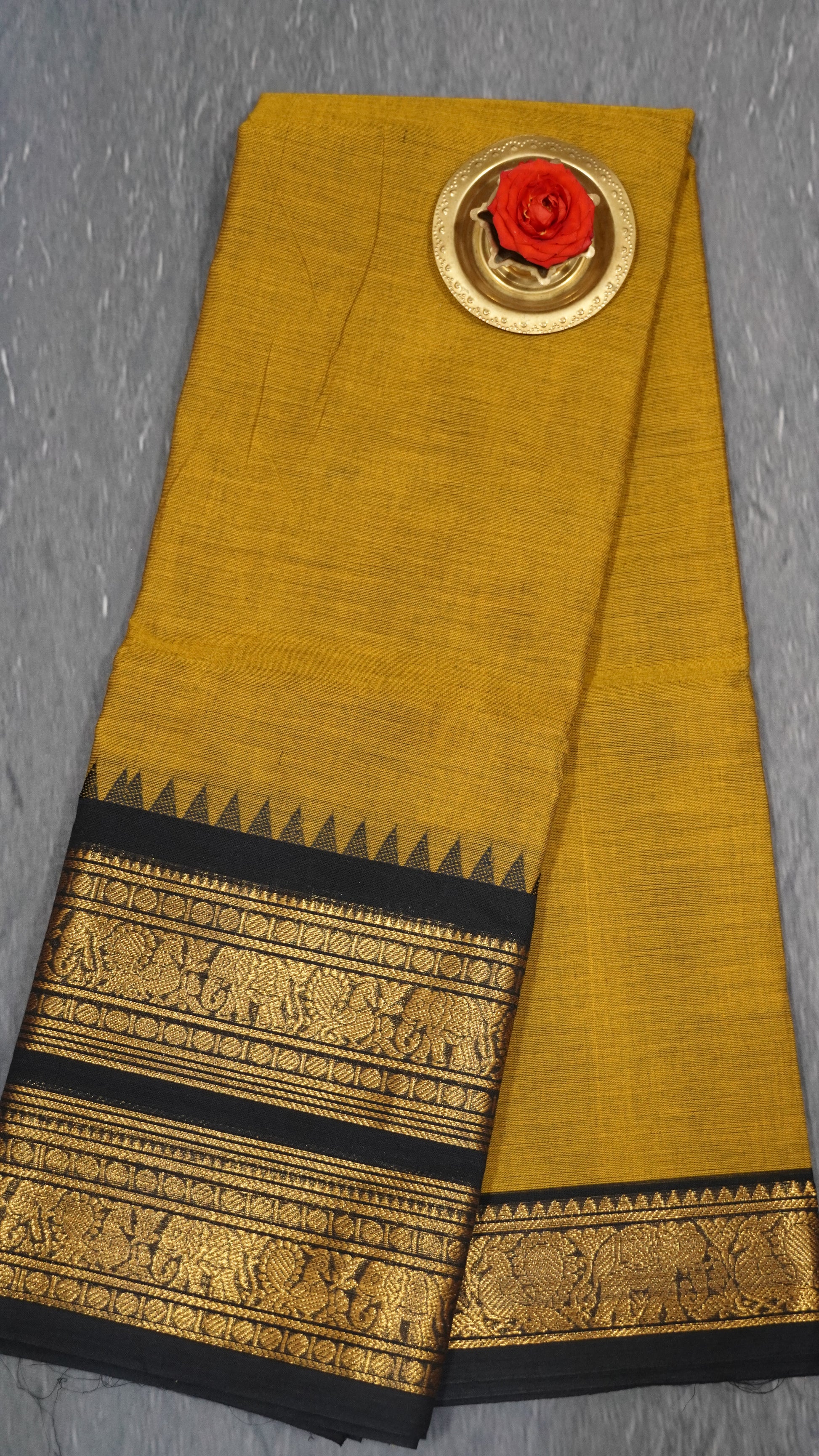 Kanchi Cotton Saree - Double Border- Mustard-Black