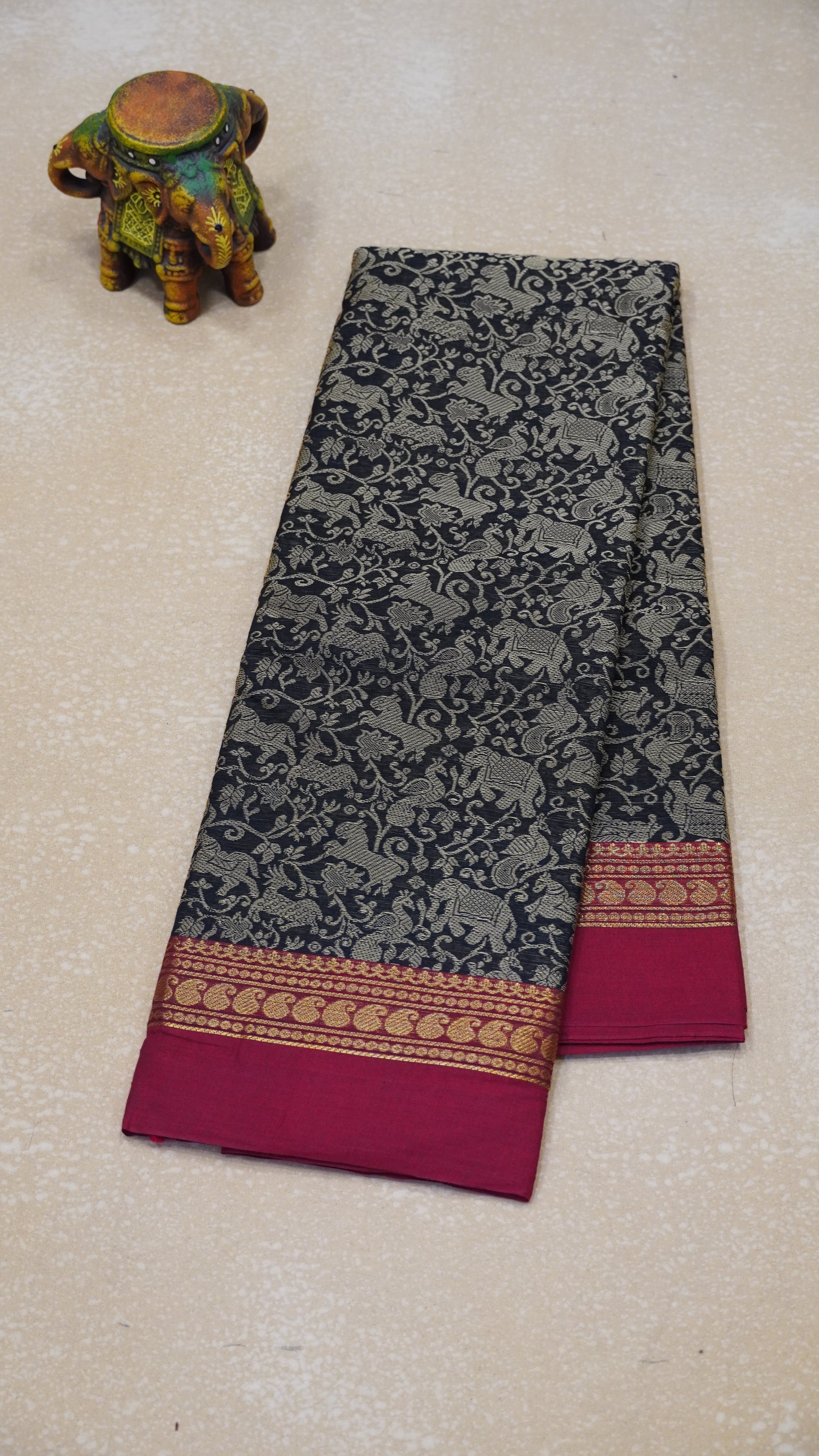 Kanchi Cotton Saree Vanasingaram Black - Maroon