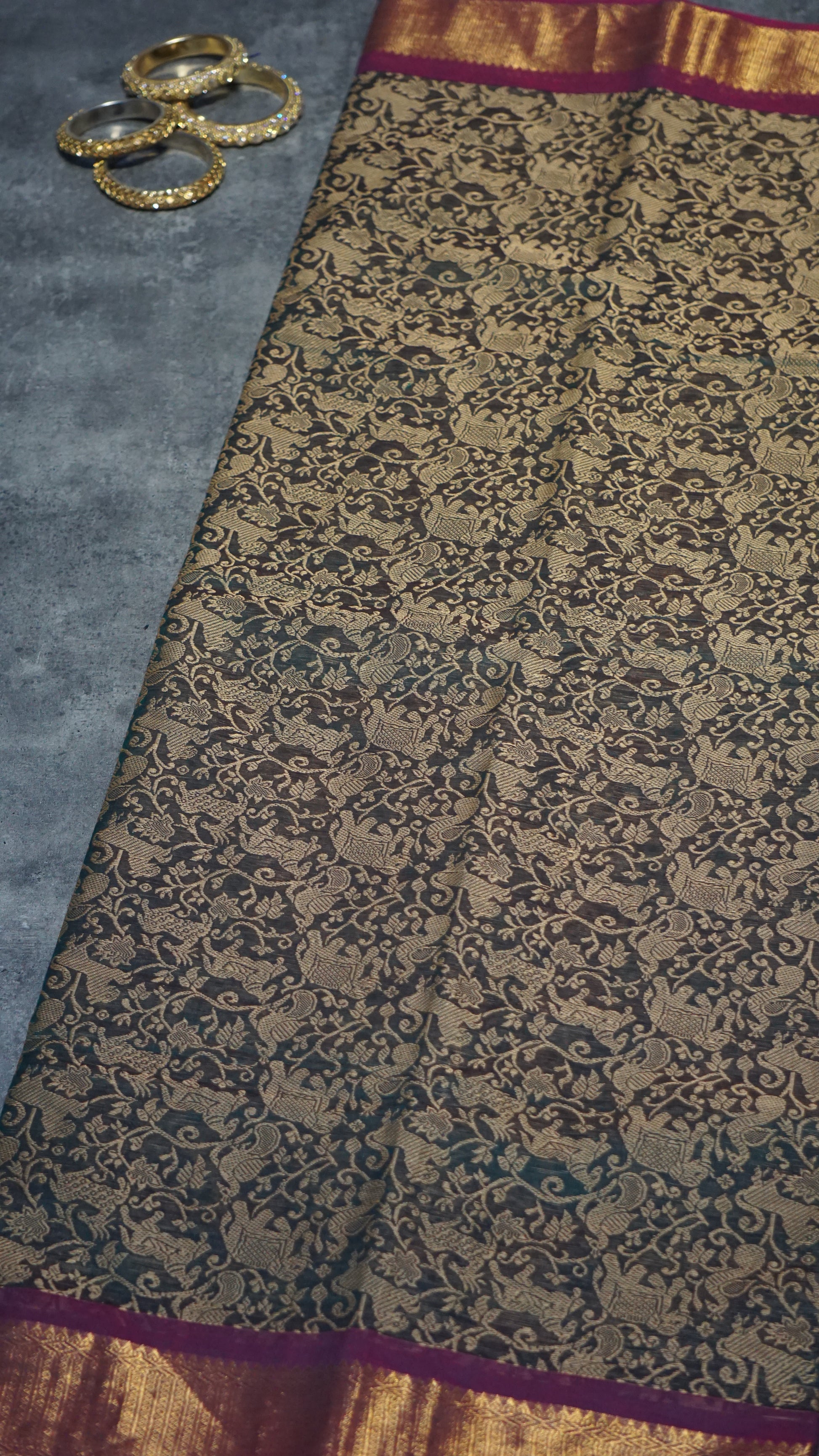 Kanchi Cotton Saree Vanasingaram Bottle Green